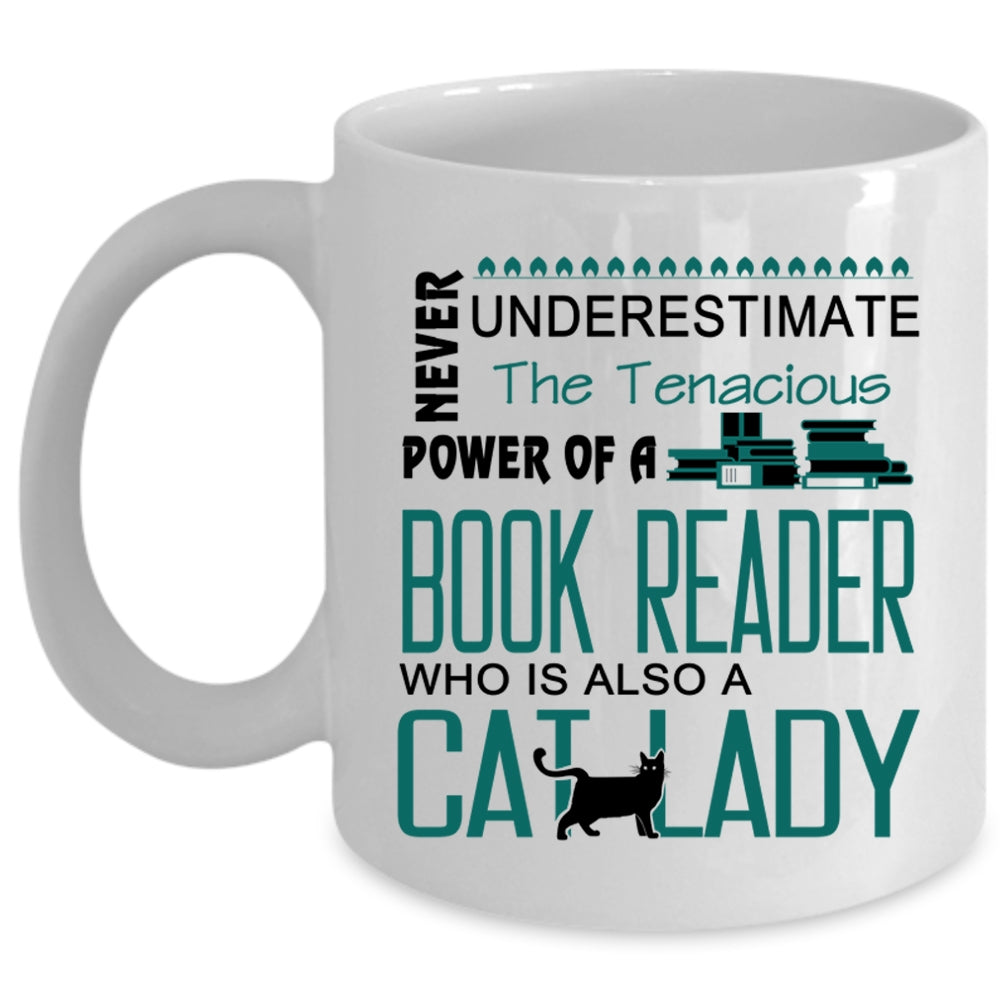 The Tenacious Power Of A Book Reader Cup, Cat Lady Mug (Coffee Mug - White)