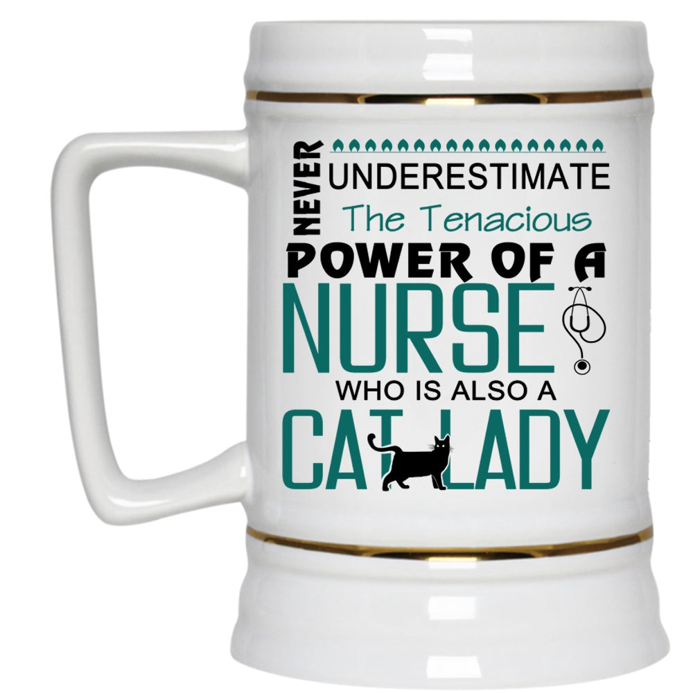 The Tenacious Power Of A Nurse Cup, Cat Lady Mug (Beer Mug)