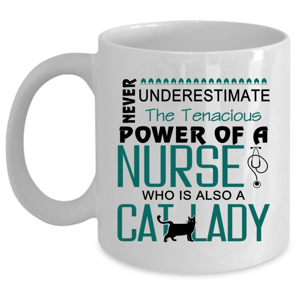 The Tenacious Power Of A Nurse Cup, Cat Lady Mug (Coffee Mug - White)