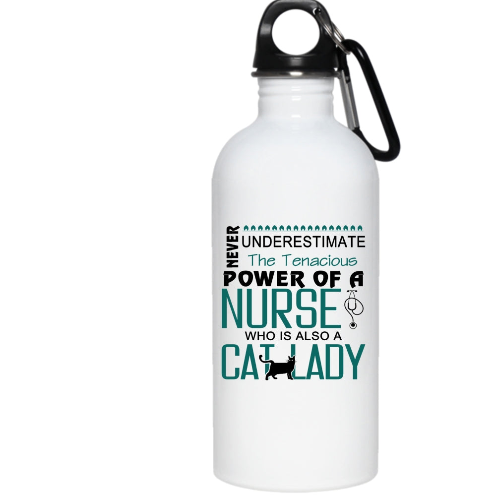 The Tenacious Power Of A Nurse Cup, Cat Lady Mug (Stainless Steel Water Bottle)