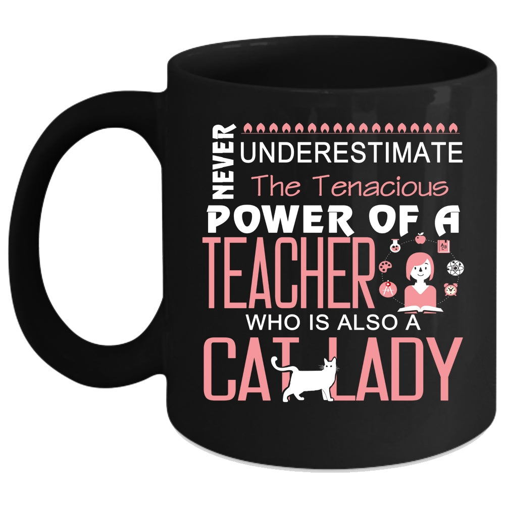 The Tenacious Power Of A Teacher Mug, Cat Lady Cup