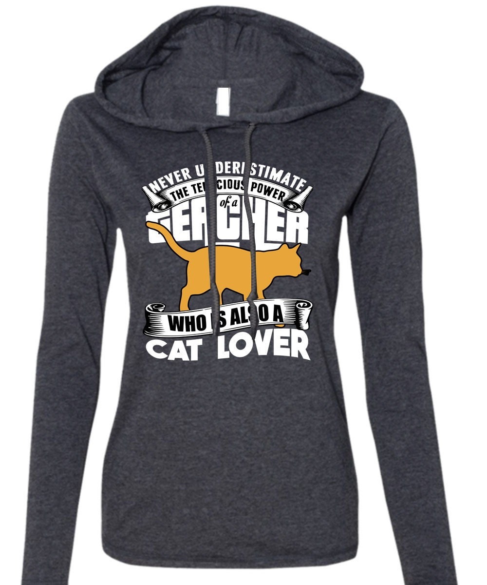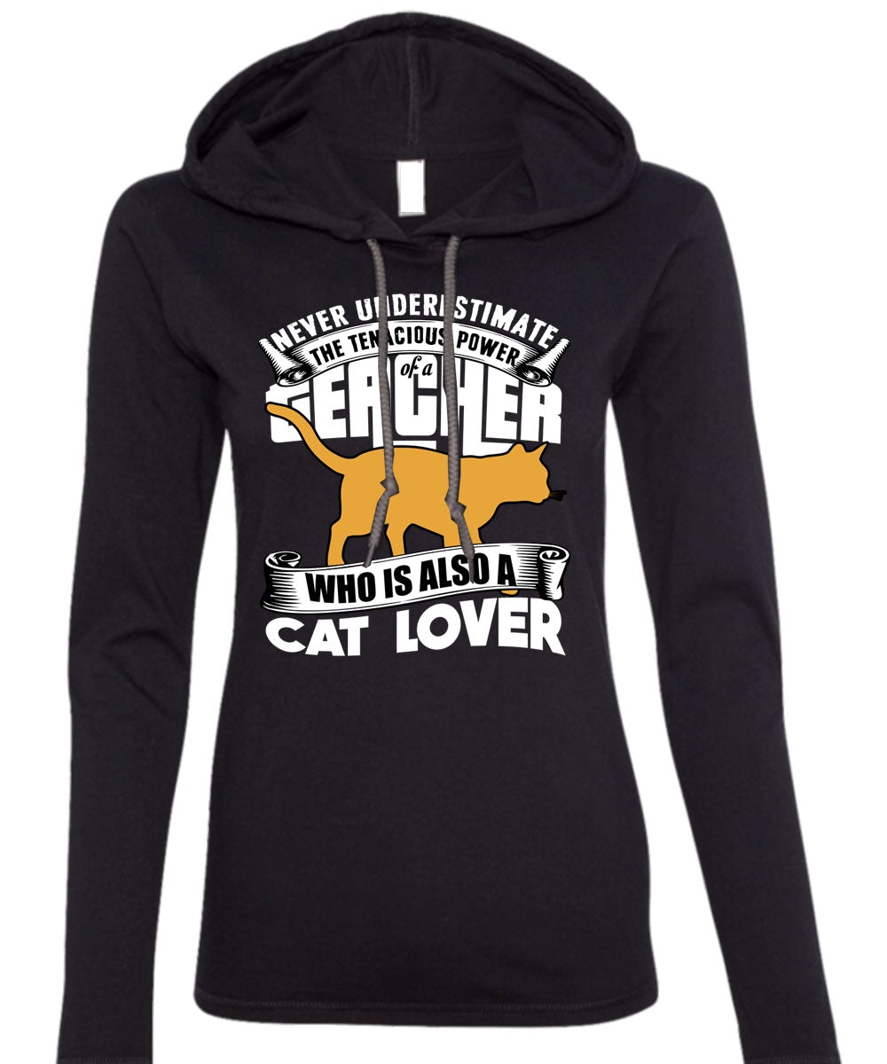 The Tenacious Power Of A Teacher T Shirt, Cat Lover T Shirt (Anvil Ladies Ringspun Hooded)
