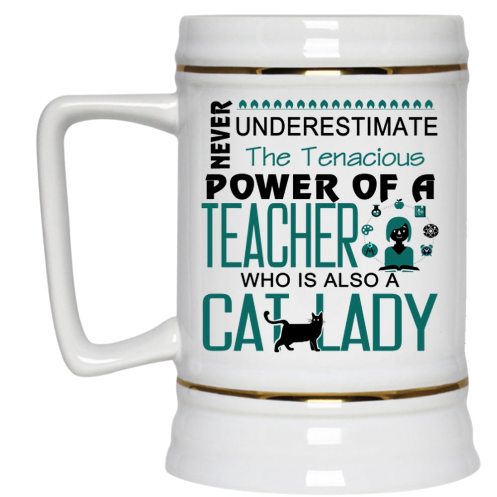 The Tenacious Power Of A Teacher Who Is Also A Cat Lady Mug (Beer Mug)
