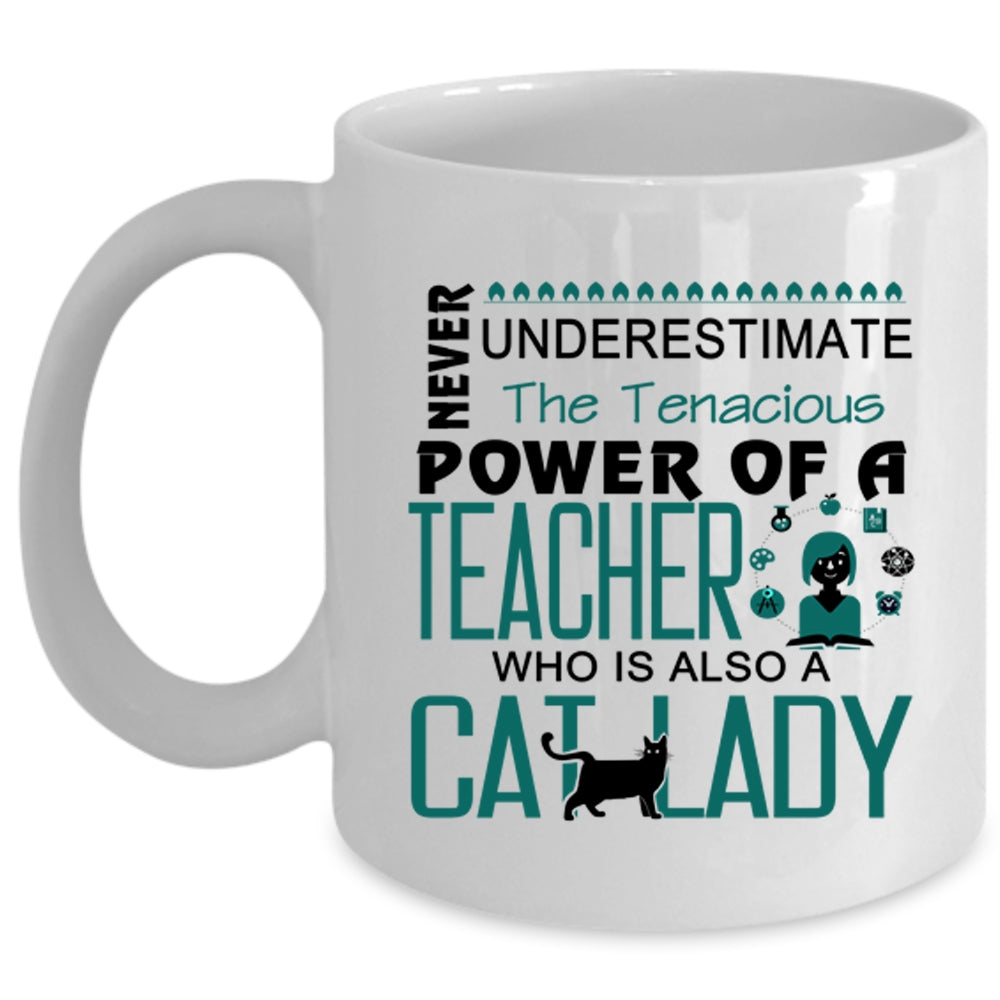 The Tenacious Power Of A Teacher Who Is Also A Cat Lady Mug (Coffee Mug - White)