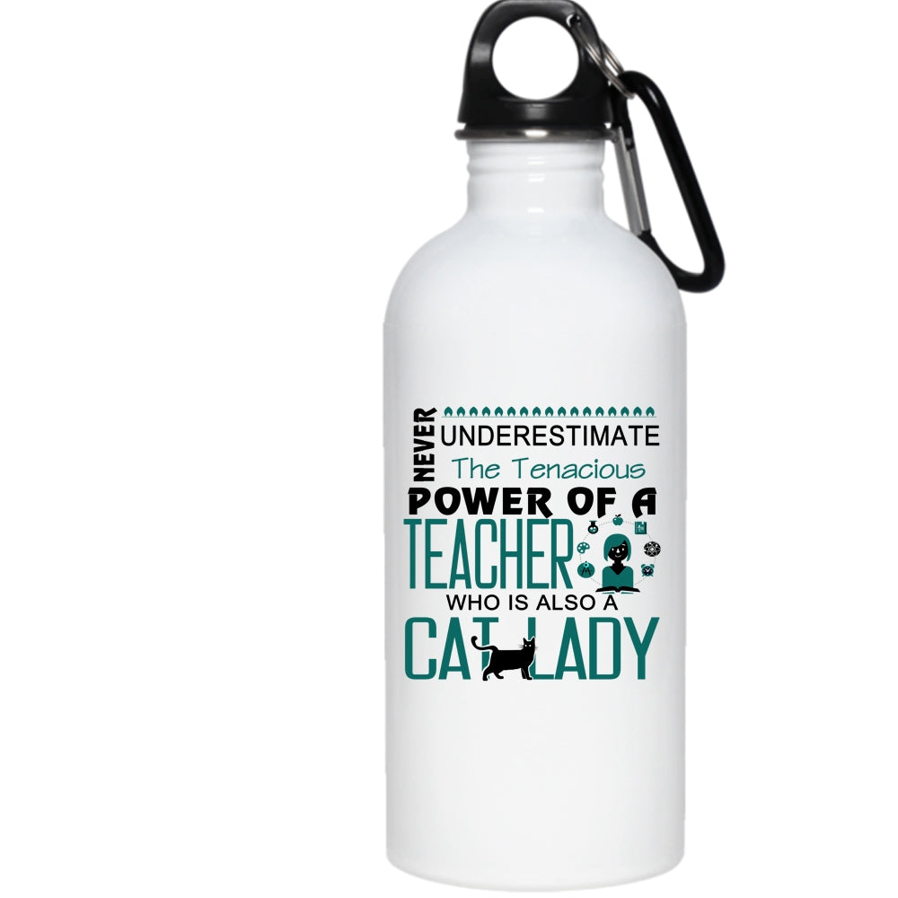 The Tenacious Power Of A Teacher Who Is Also A Cat Lady Mug (Stainless Steel Water Bottle)