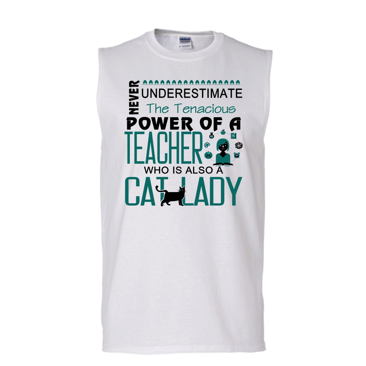 The Tenacious Power Of A Teacher Who Is Also A Cat Lady Shirt, Cat Shirt (Men's Cotton Sleeveless)