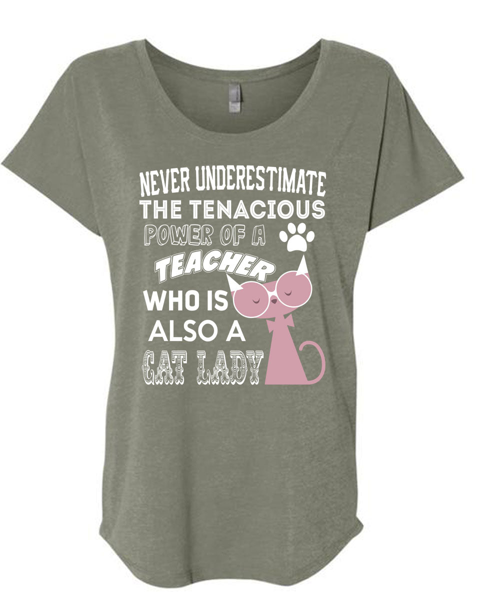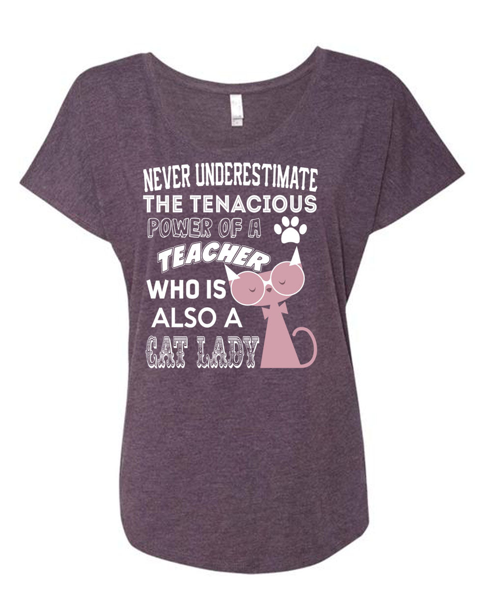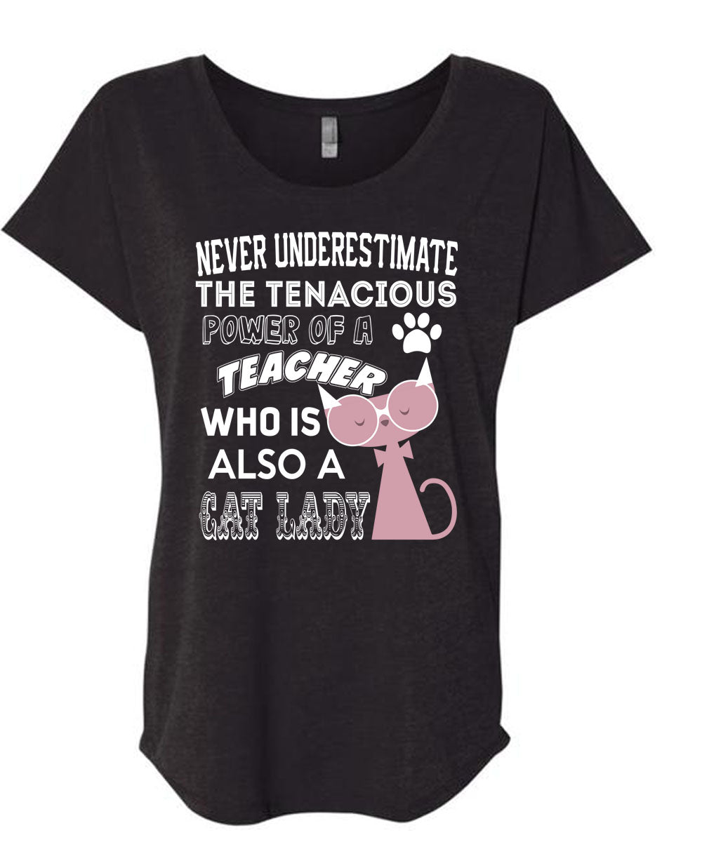 The Tenacious Power Of A Teacher Who Is Also A Cat Lady T Shirt, I Love Teaching T Shirt, Cool Shirt (Ladies' Triblend Dolman Sleeve)