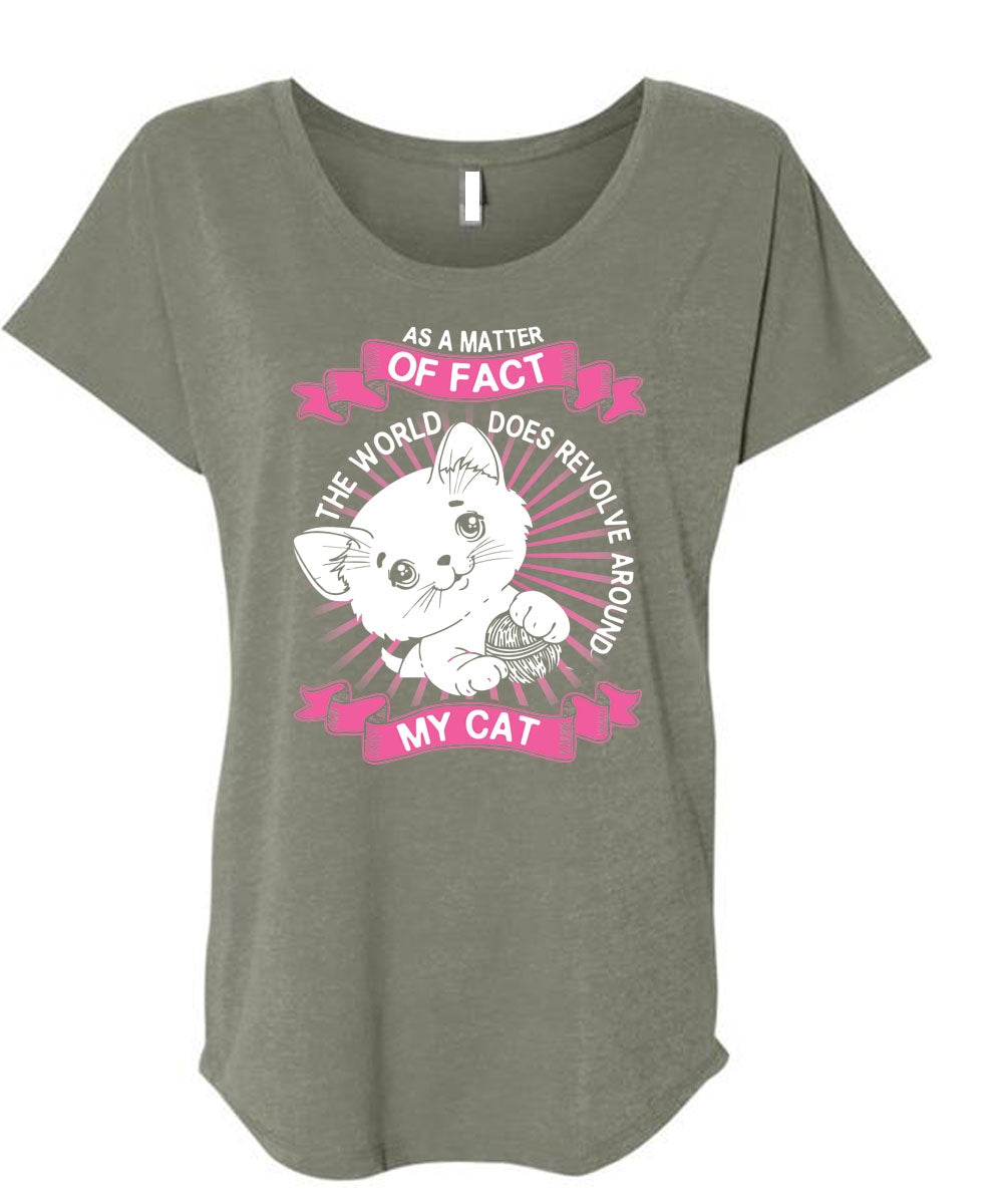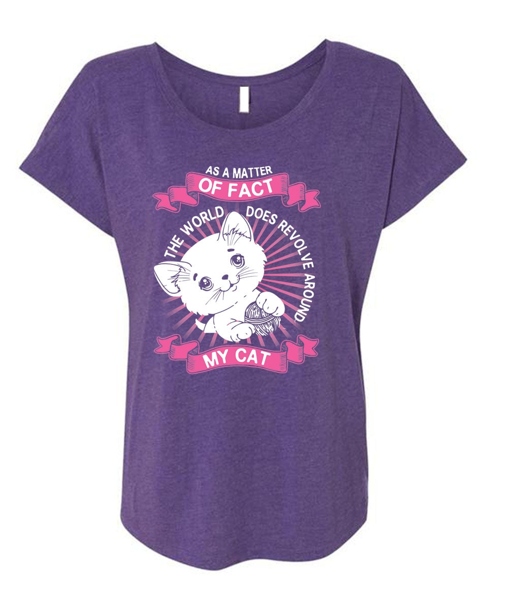 The World Does Revolve Around My Cat T Shirt, My Favorite T Shirt, Cool Shirt (Ladies' Triblend Dolman Sleeve)