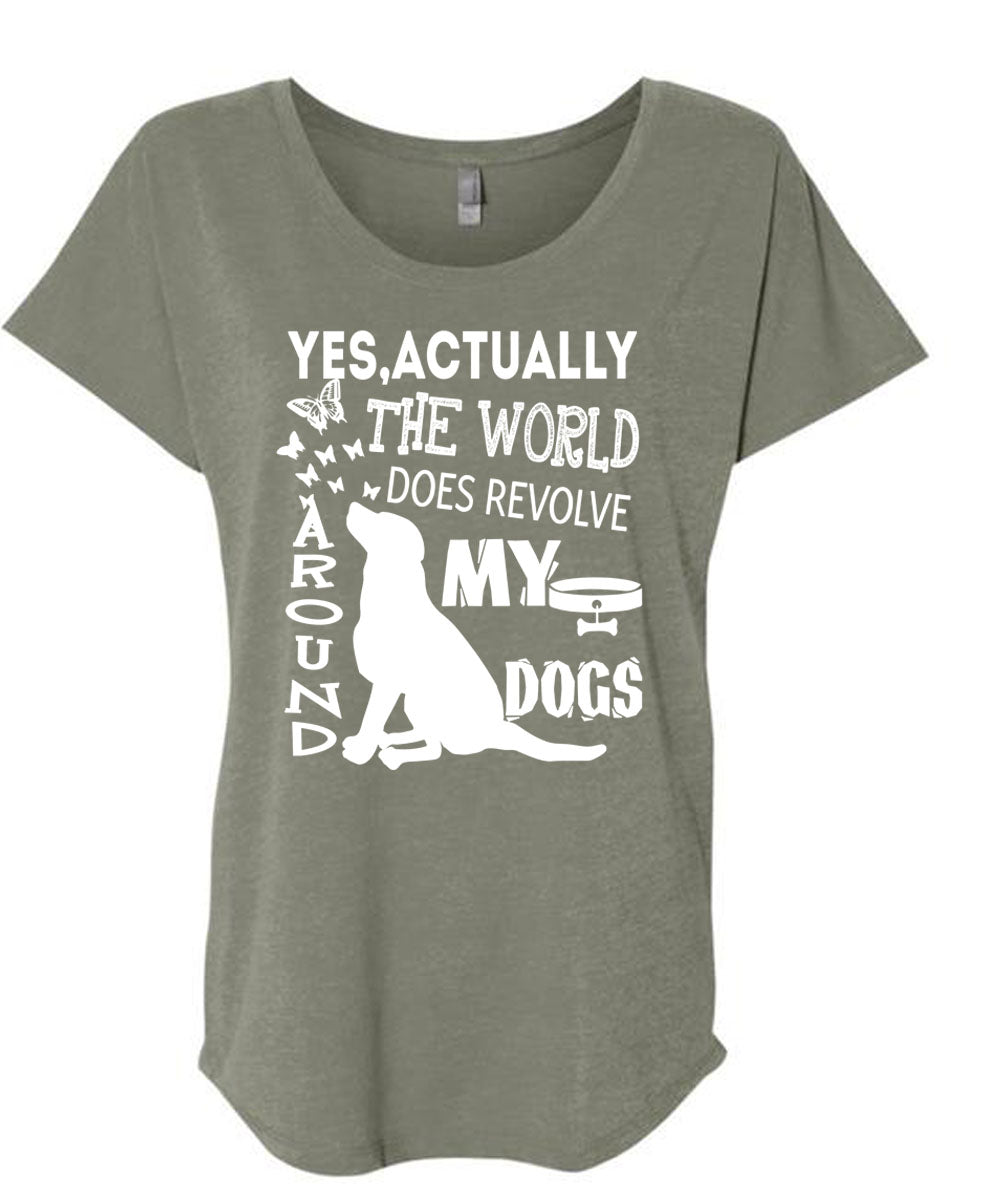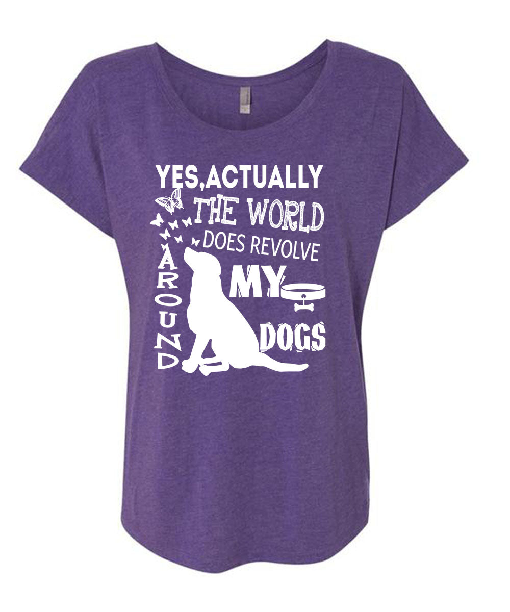 The World Does Revolve Around My Dogs T Shirt, I Love My Life T Shirt, Cool Shirt (Ladies' Triblend Dolman Sleeve)