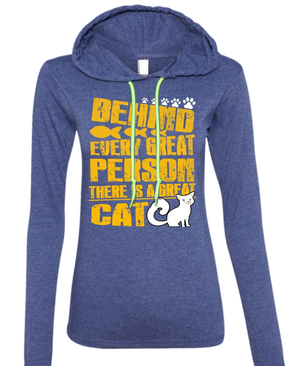There Is A Great Cat T Shirt, Behind Every Great Person T Shirt (Anvil Ladies Ringspun Hooded)