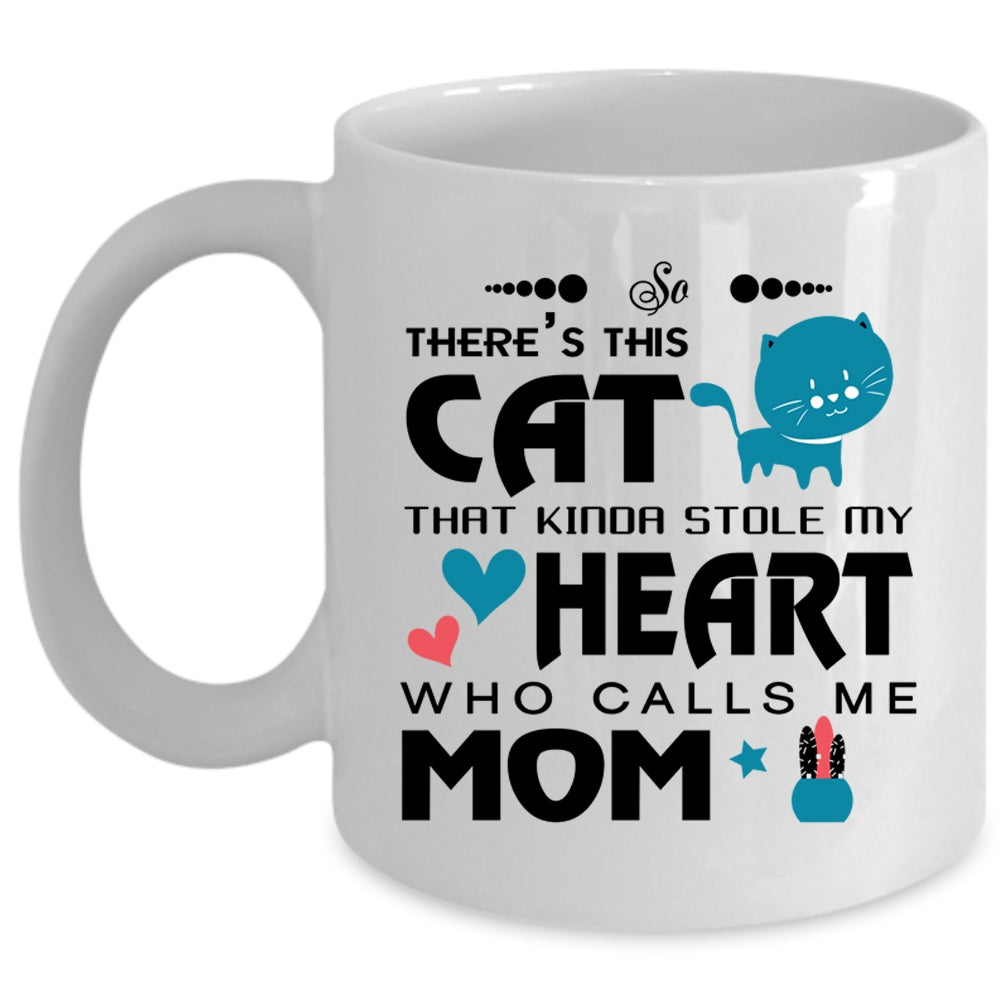 This Cat Kinda Stole My Heart Who Calls Me Mom Mug (Coffee Mug - White)