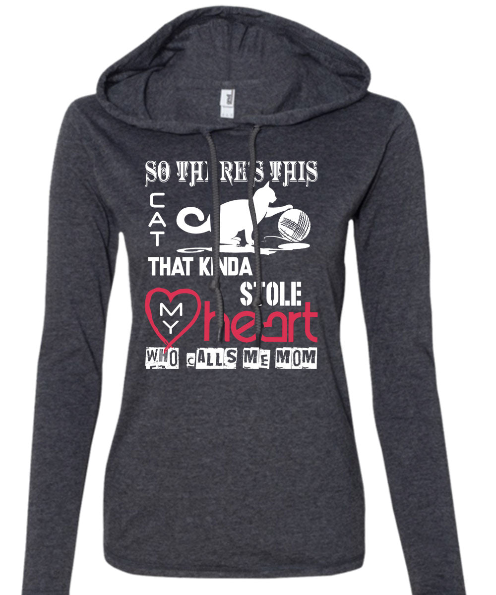 This Cat That Kinda Stole My Heart T Shirt, Calls Me Mom T Shirt (Anvil Ladies Ringspun Hooded)