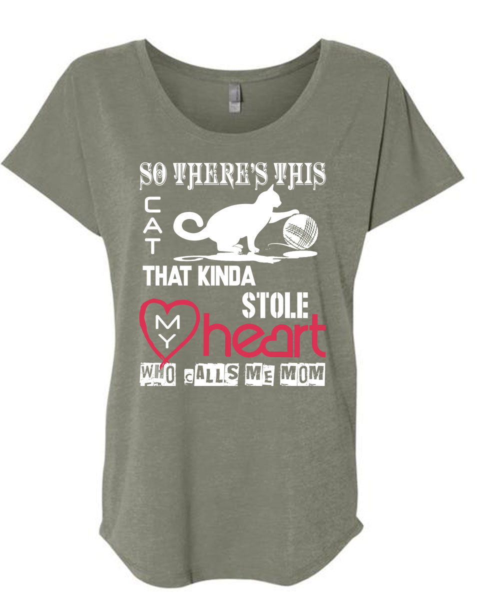 This Cat That Kinda Stole My Heart T Shirt, Calls Me Mom T Shirt, Cool Shirt (Ladies' Triblend Dolman Sleeve)