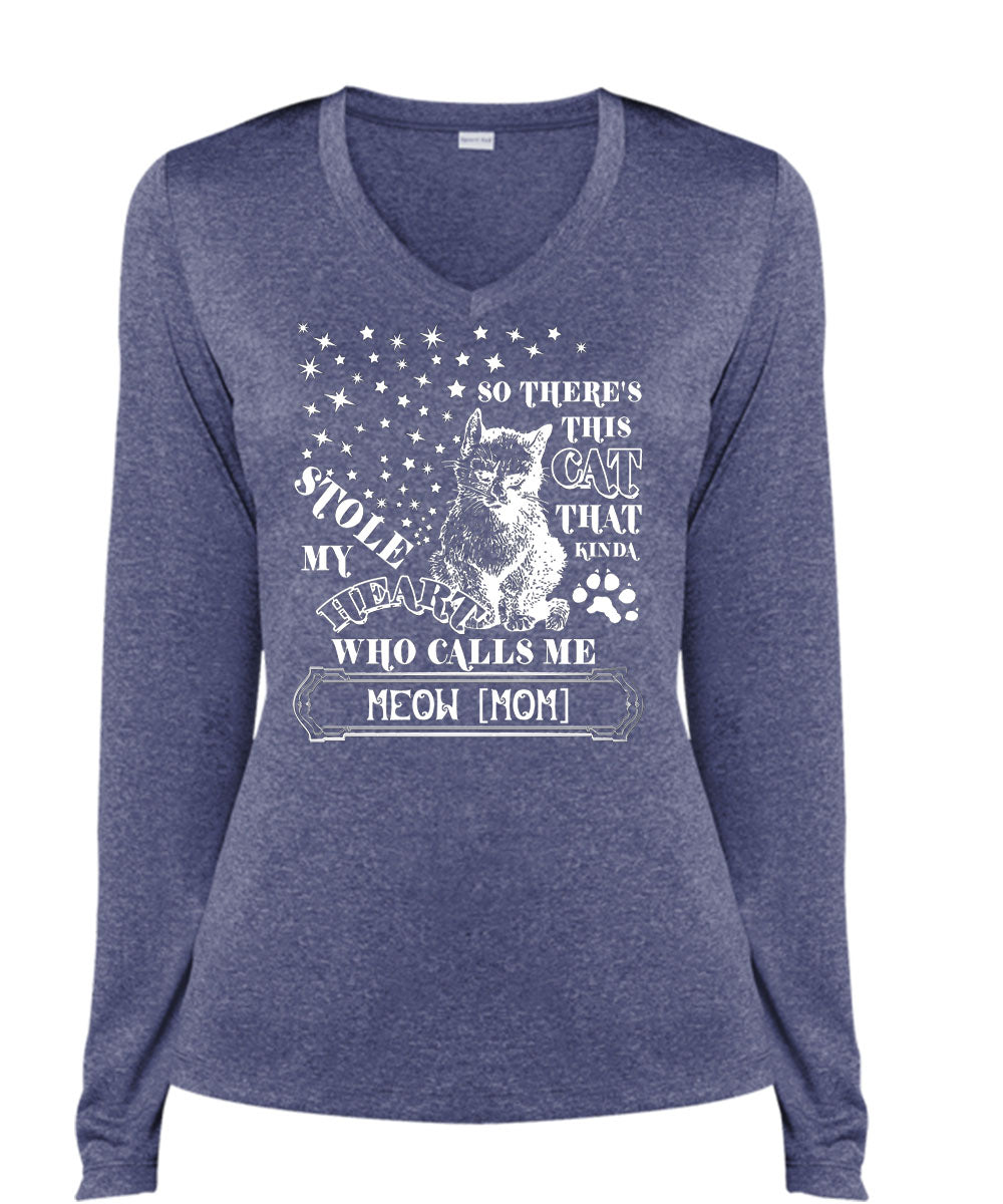 This Cat That Kinda Stole My Heart T Shirt, I Love Cats T Shirt, Cool Shirt (Ladies LS Heather V-Neck)