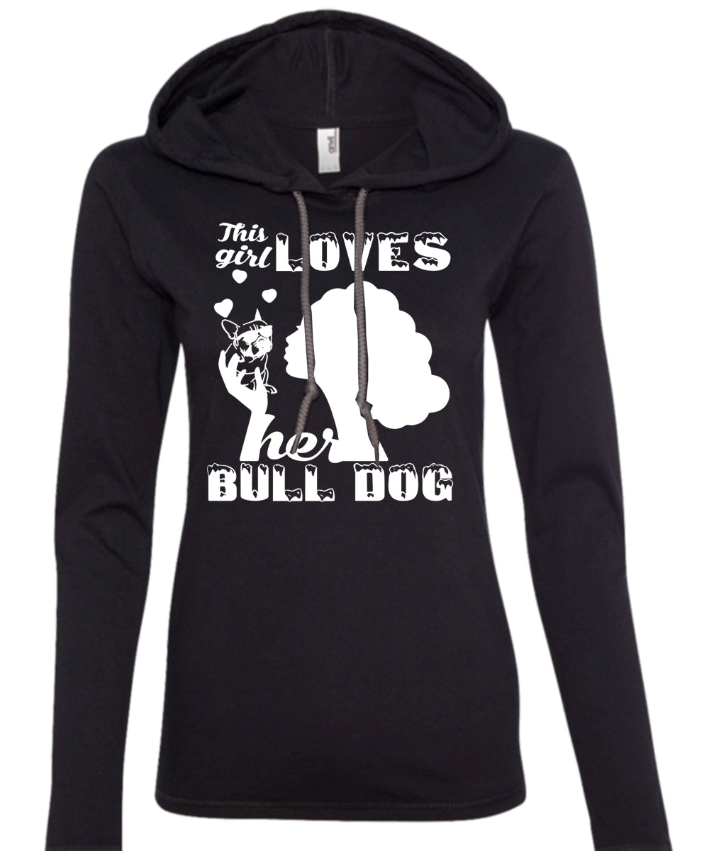 This Girl Loves Her Bulldog T Shirt, I Love Dog T Shirt, My Pets T Shirt (Anvil Ladies Ringspun Hooded)