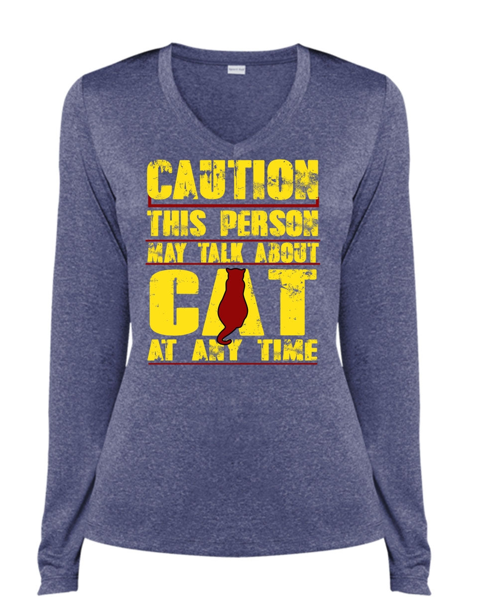 This Person May Talk About Cat T Shirt, My Favorite T Shirt, Cool Shirt (Ladies LS Heather V-Neck)