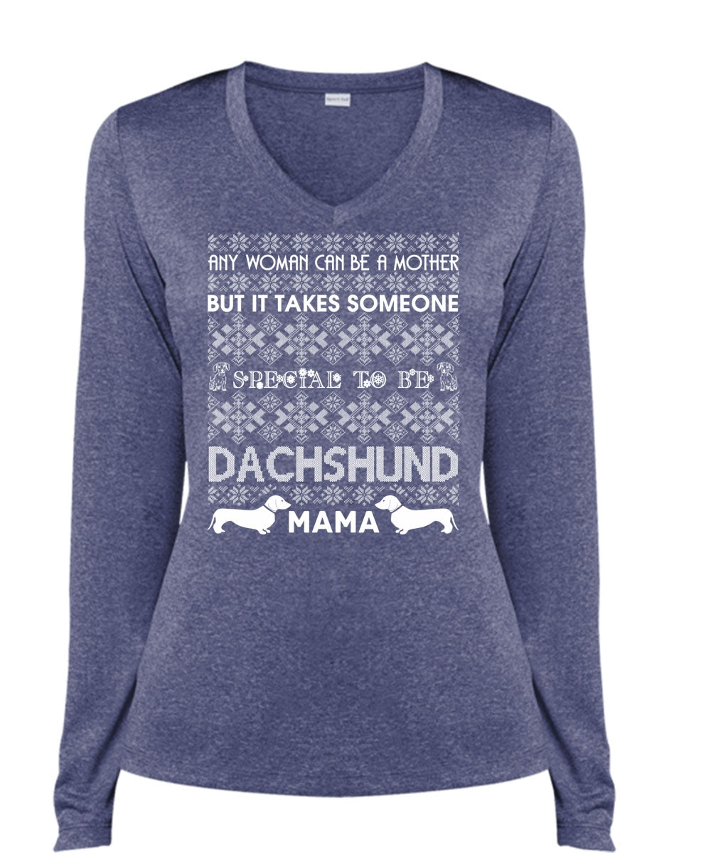 To Be Dachshund Mama T Shirt, I Love My Dog T Shirt, Cool Shirt (Ladies LS Heather V-Neck)