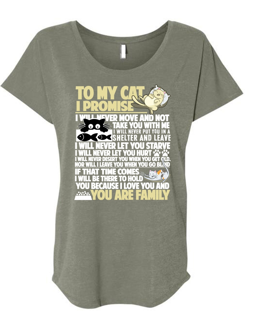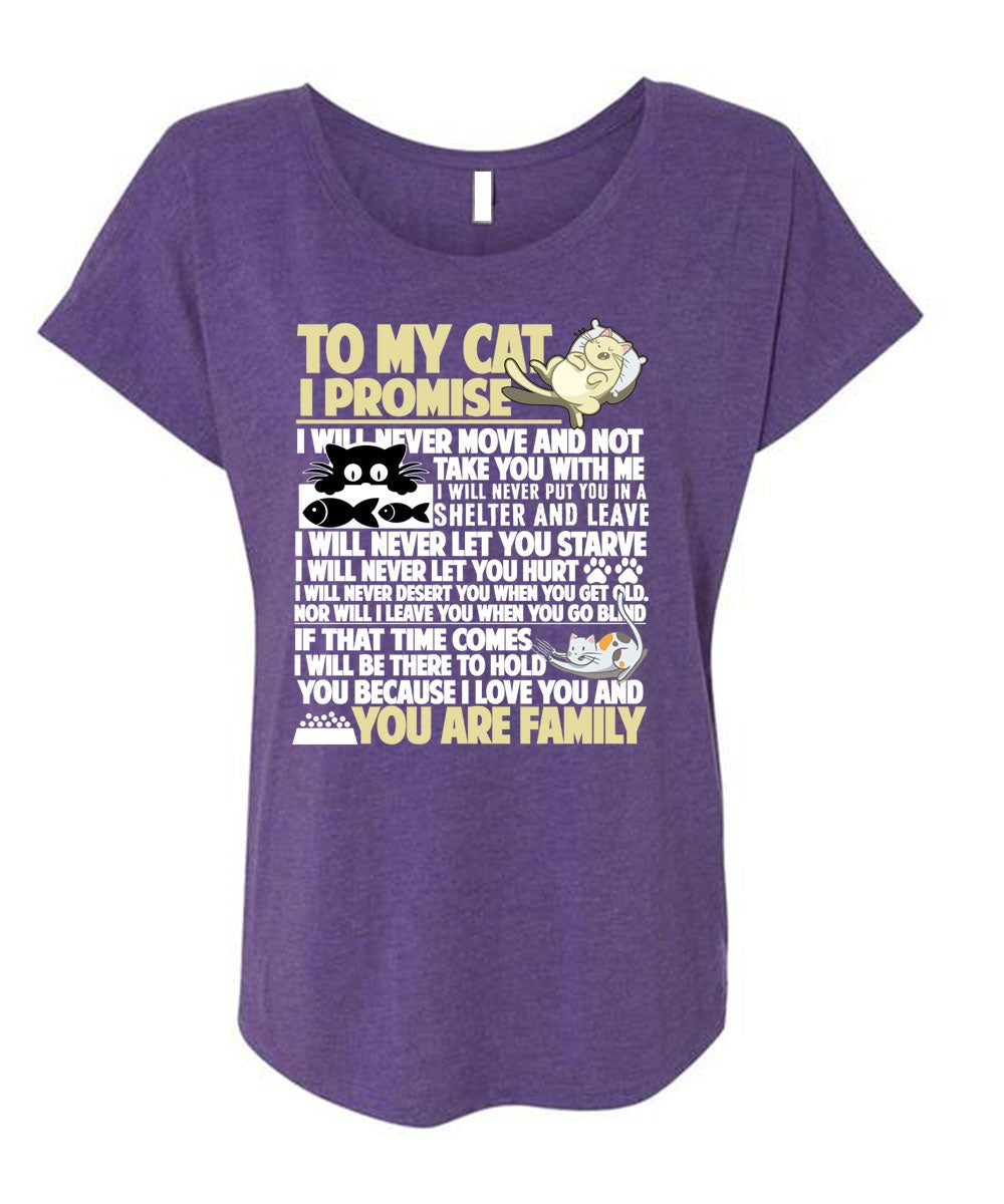 To My Cat I Promise T Shirt, I Love My Cat T Shirt, Cool Shirt (Ladies' Triblend Dolman Sleeve)