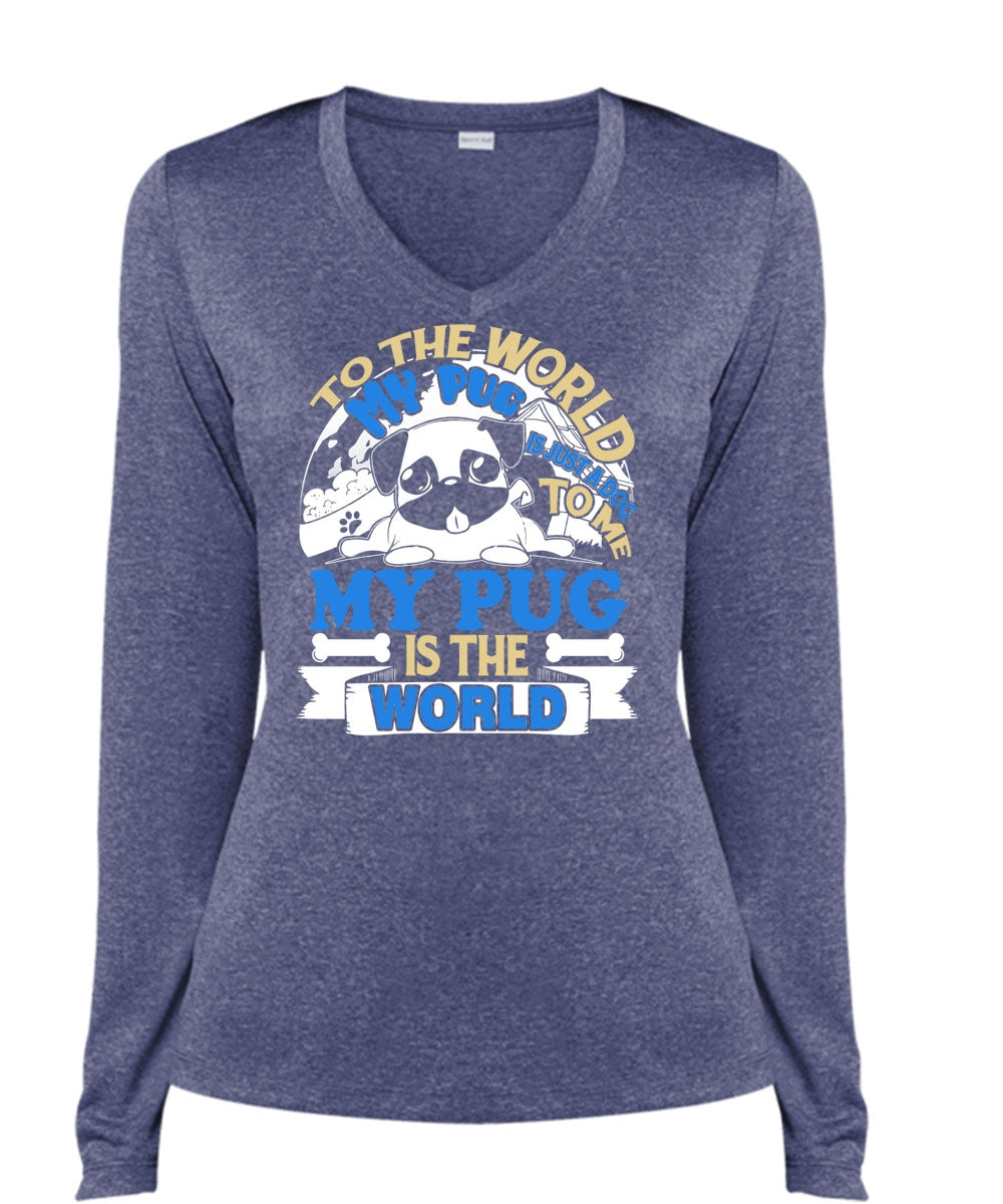 To The World My Pug Is Just A Dog To Me T Shirt, My Favorite T Shirt, Cool Shirt (Ladies LS Heather V-Neck)