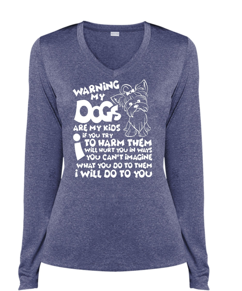 Warning My Dog Are My Kids T Shirt, You Can't Imagine T Shirt, Cool Shirt (Ladies LS Heather V-Neck)