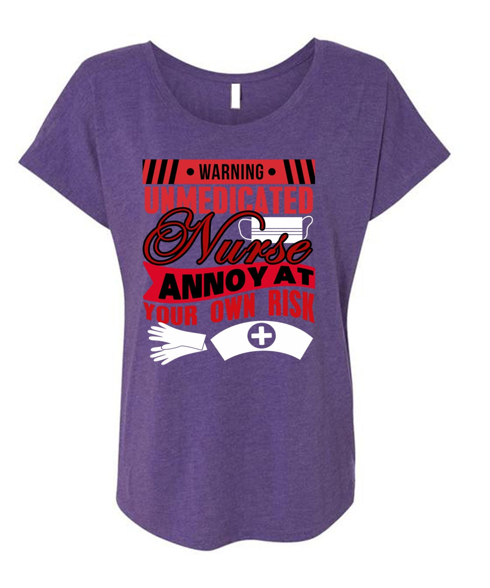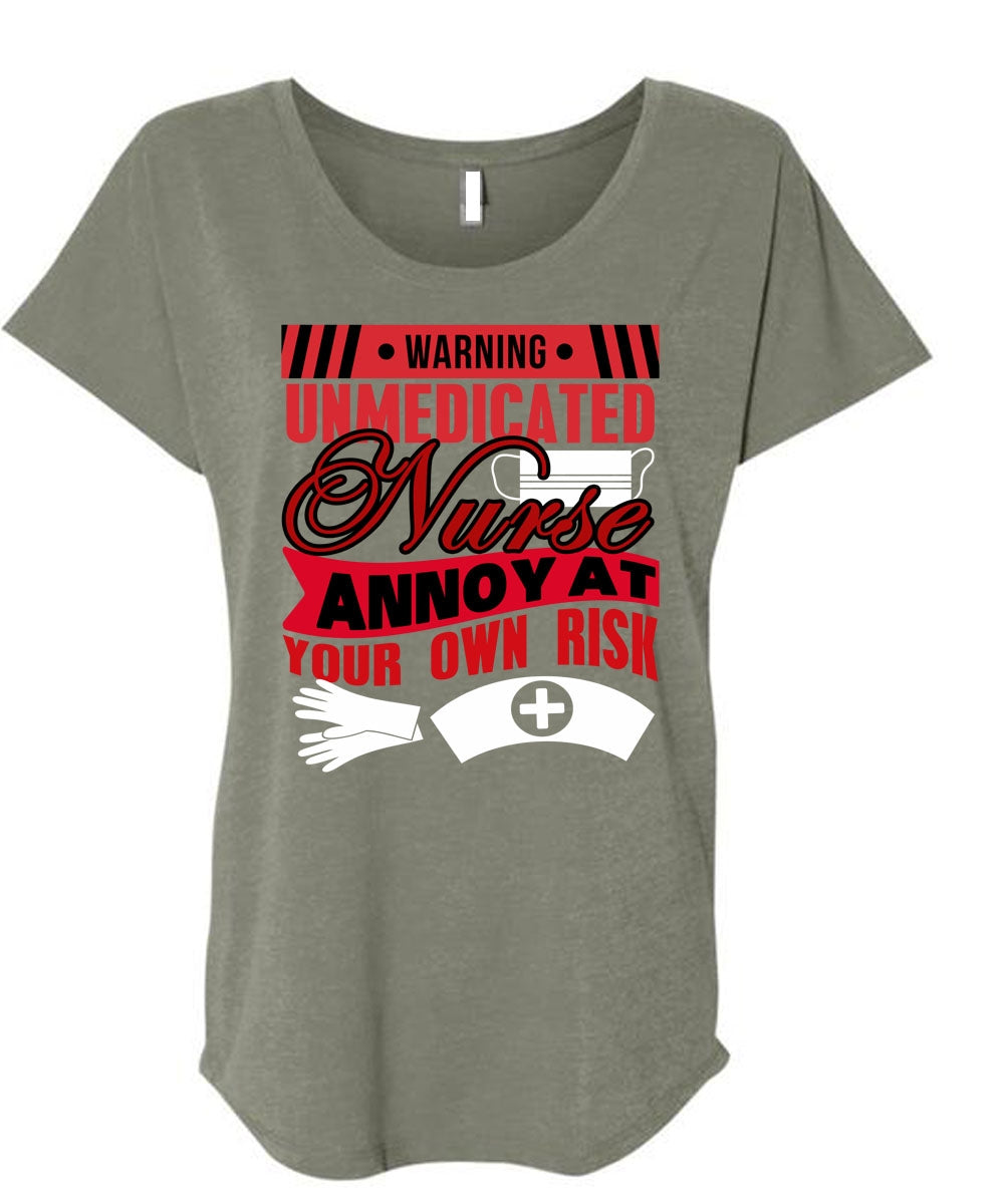 Warning Unmedicated Nurse T Shirt, Being A Nurse T Shirt, Cool Shirt (Ladies' Triblend Dolman Sleeve)