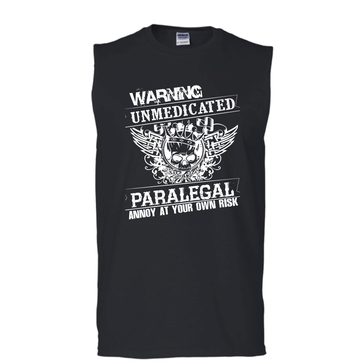 Warning Unmedicated T Shirt, Paralegal Annoy At Your Own Risk T Shirt, Cool T Shirt (Men's Cotton Sleeveless)