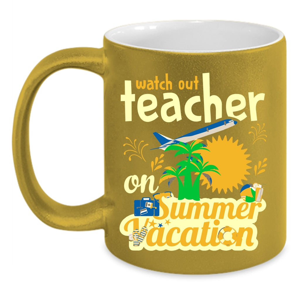 Watch Out Teacher On Summer Vacation Cup, Cool Teacher Mug