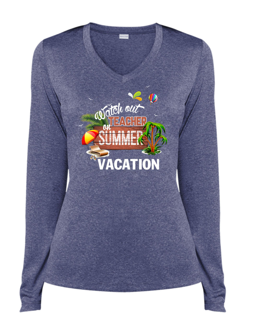 Watch Out Teacher On Summer Vacation T Shirt, Being A Teacher T Shirt, Cool Shirt (Ladies LS Heather V-Neck)