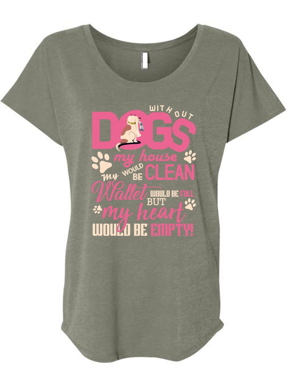 With Out Dogs My House T Shirt, My Heart Would Be Empty T Shirt, Cool Shirt (Ladies' Triblend Dolman Sleeve)