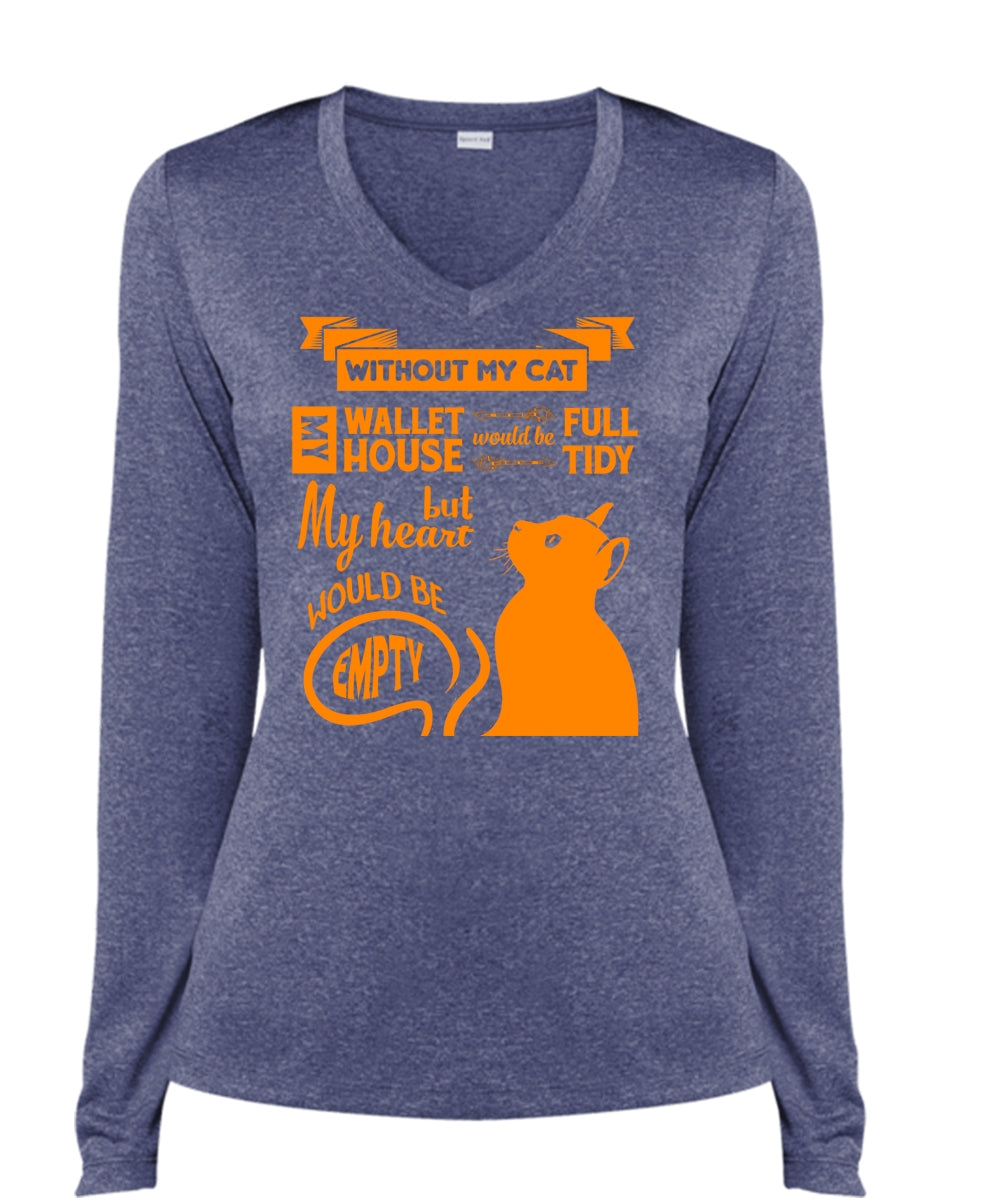 Without My Cat My House Would Be Tidy T Shirt, My Wallet Would Be Full T Shirt (Ladies LS Heather V-Neck)