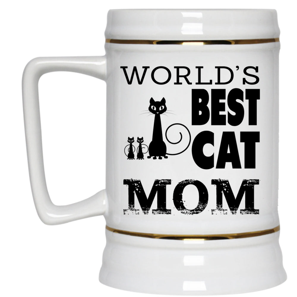 World's Best Cat Mom Mug, I Love My Cats Cup (Beer Mug)