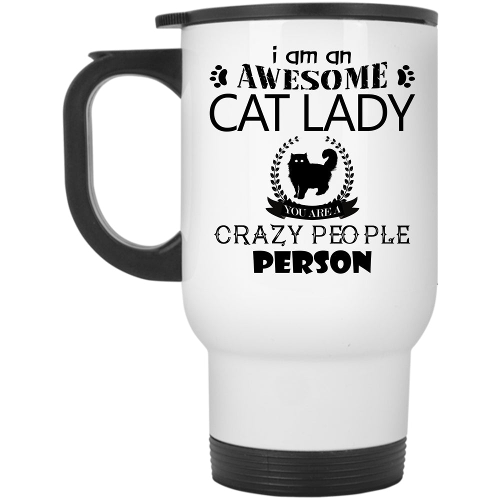 You Are A Crazy People Person Travel Mug, I Am An Awesome Cat Lady Mug