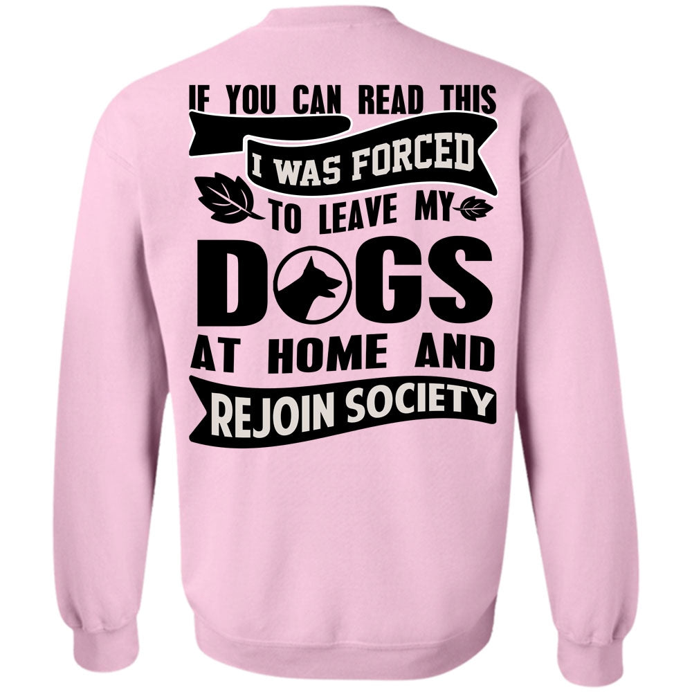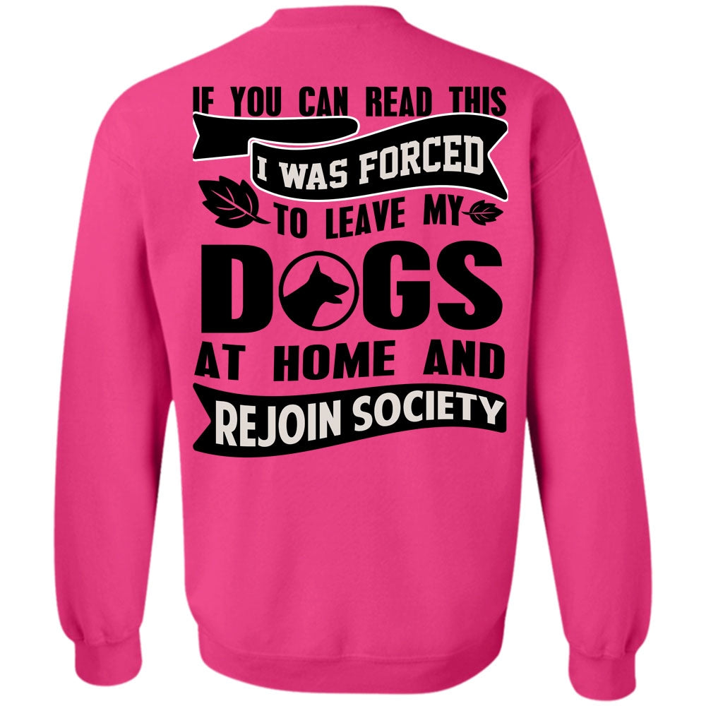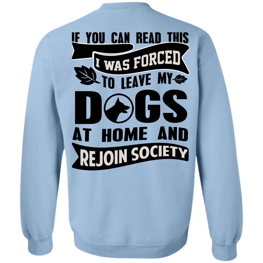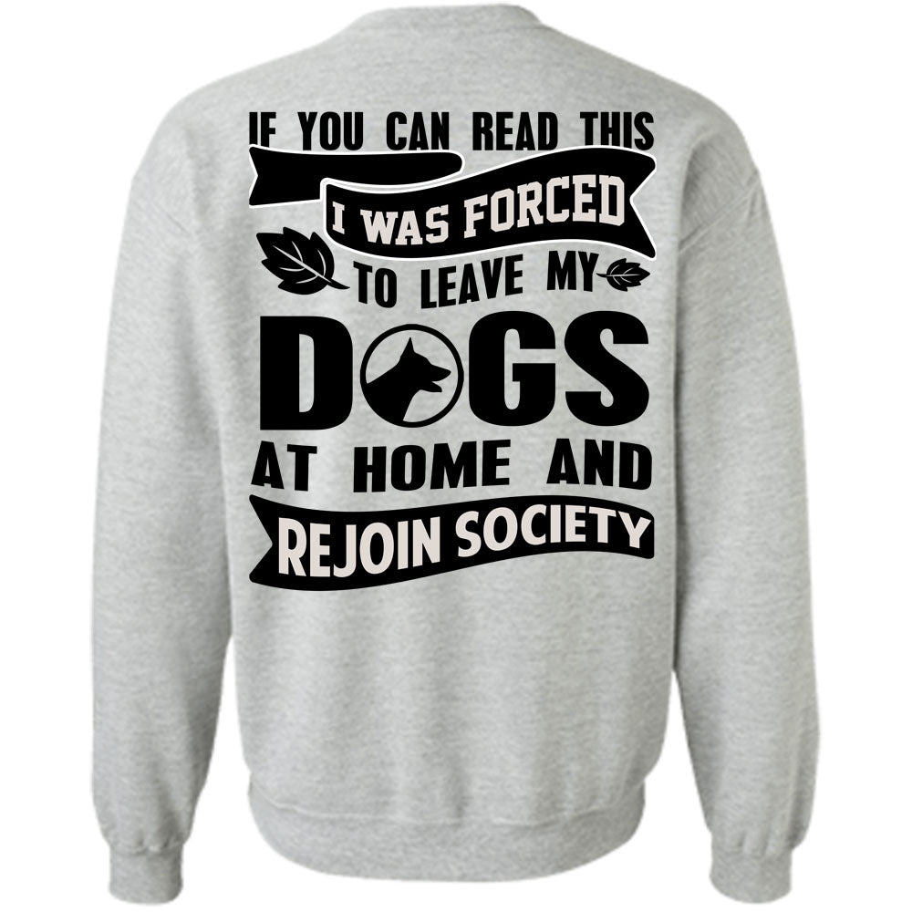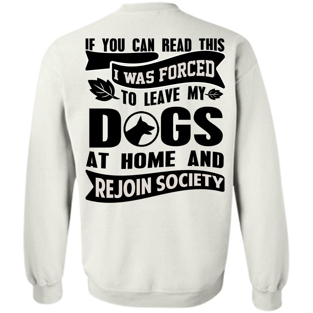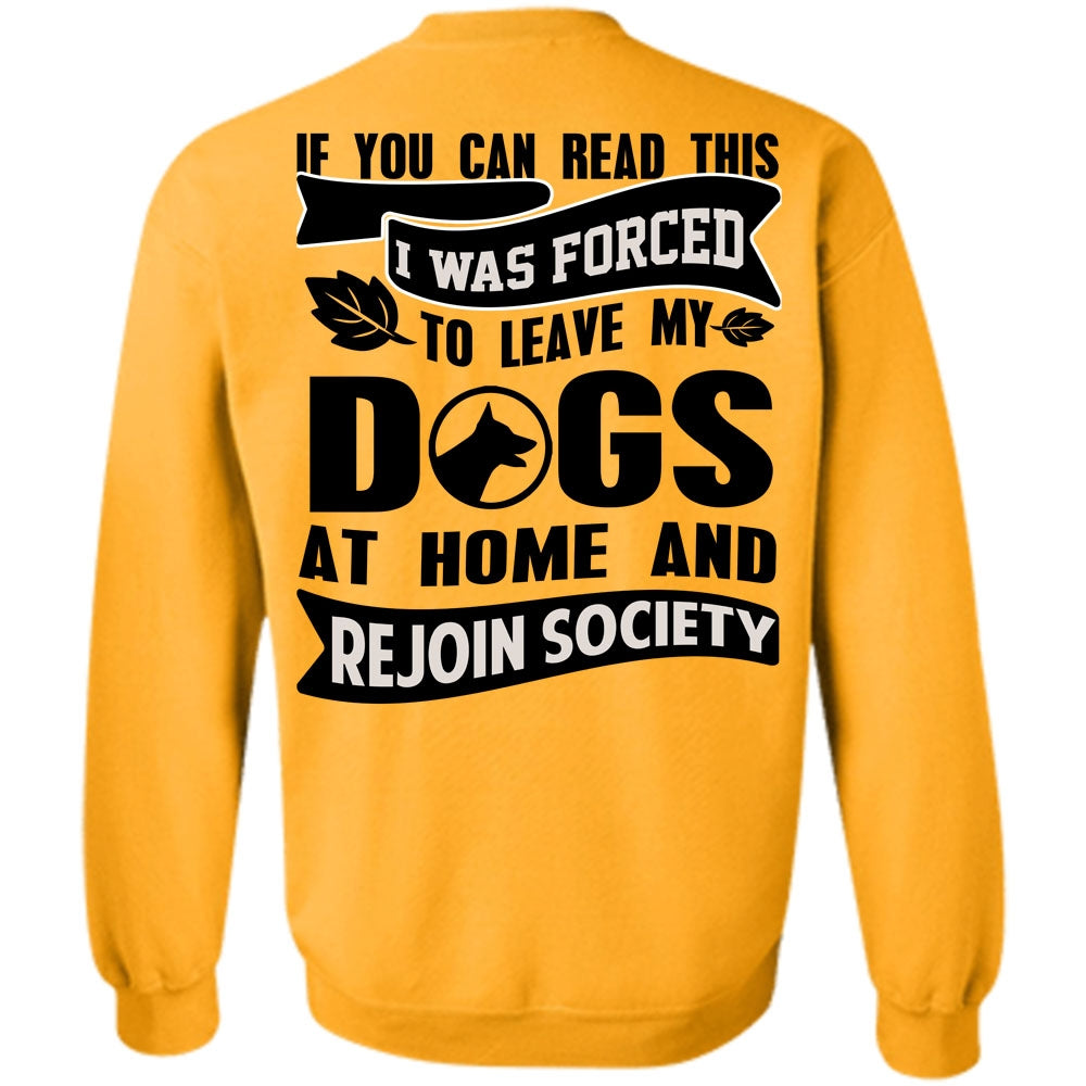 You Can Read This T Shirt, I Was Forced To Leave My Dogs Sweatshirt