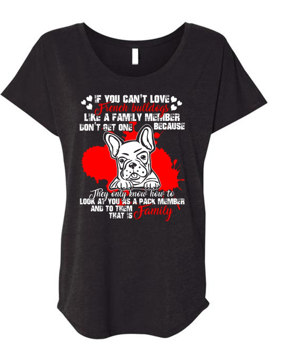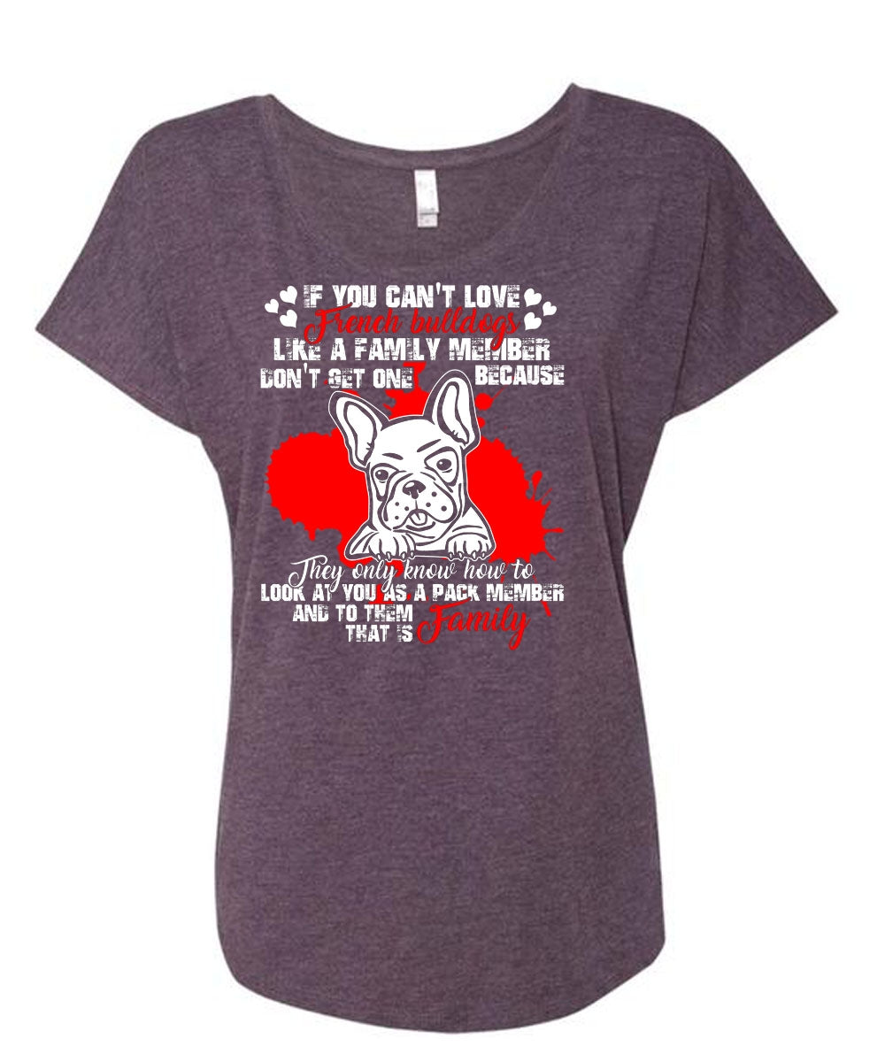 You Can't Love French Bulldogs T Shirt, Like A Family Member T Shirt, Cool Shirt (Ladies' Triblend Dolman Sleeve)