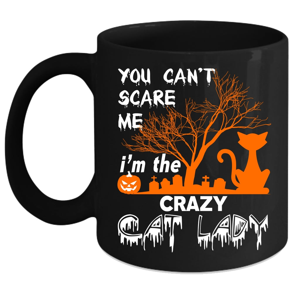 You Can't Scare Me Coffee Mug, I'm The Crazy Cat Lady Coffee Cup