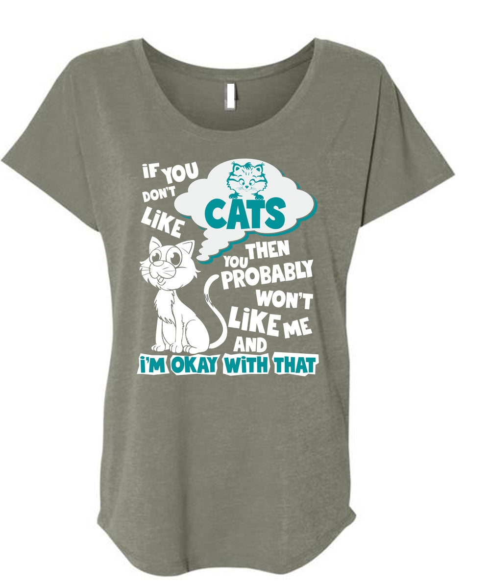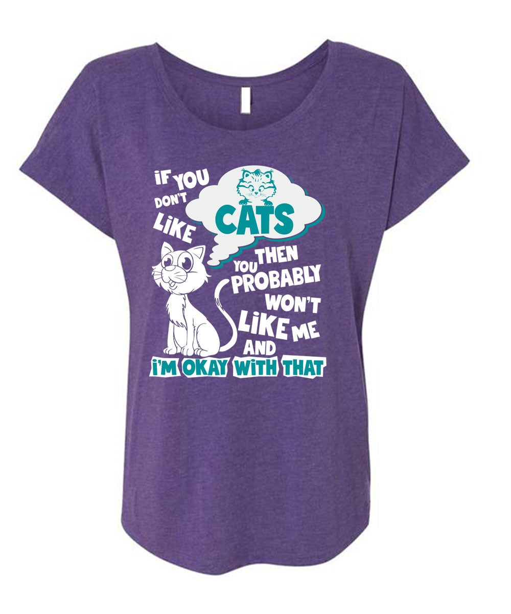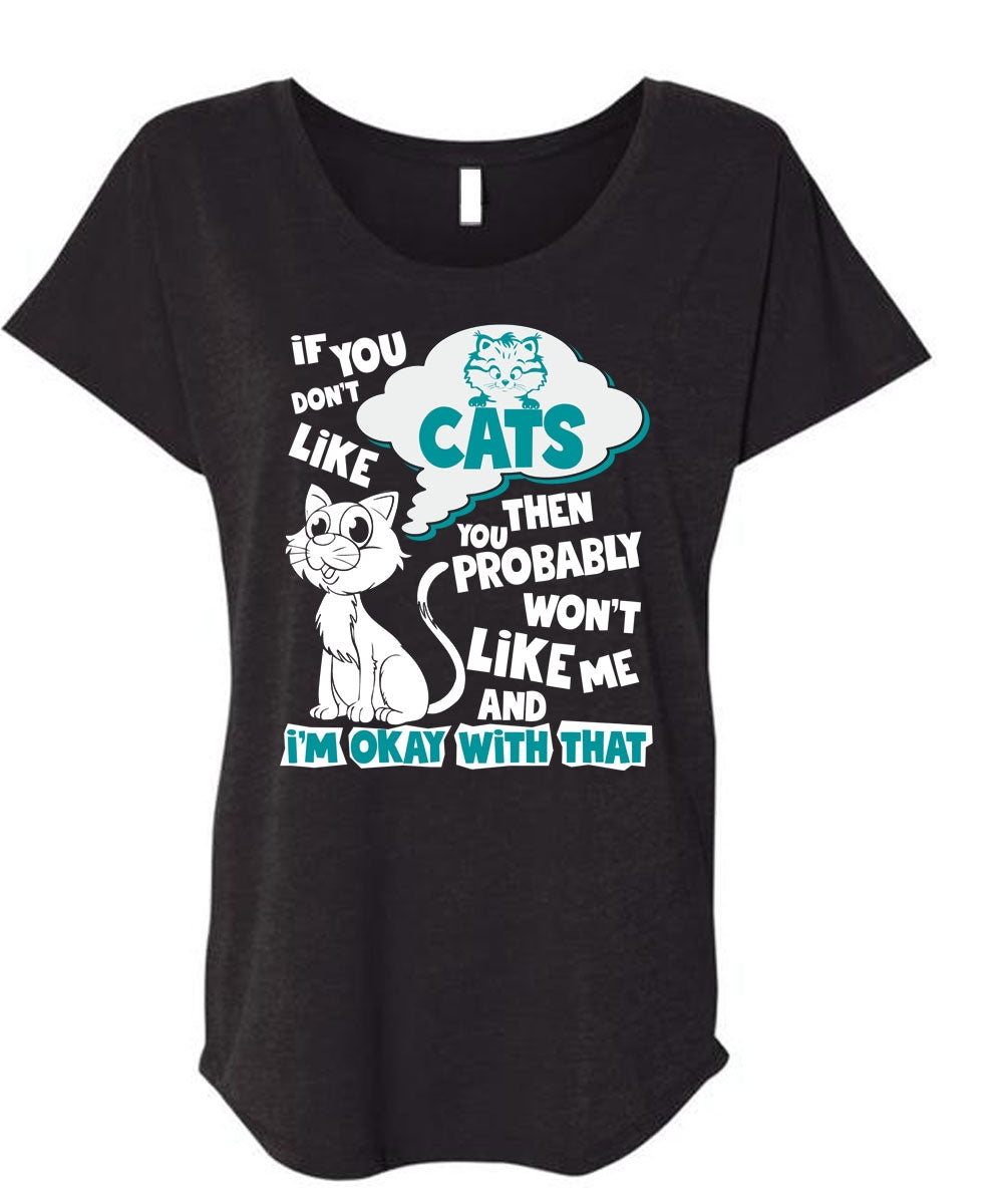 You Don't Like Cats T Shirt, You Probably Won't Like Me T Shirt, Cool Shirt (Ladies' Triblend Dolman Sleeve)
