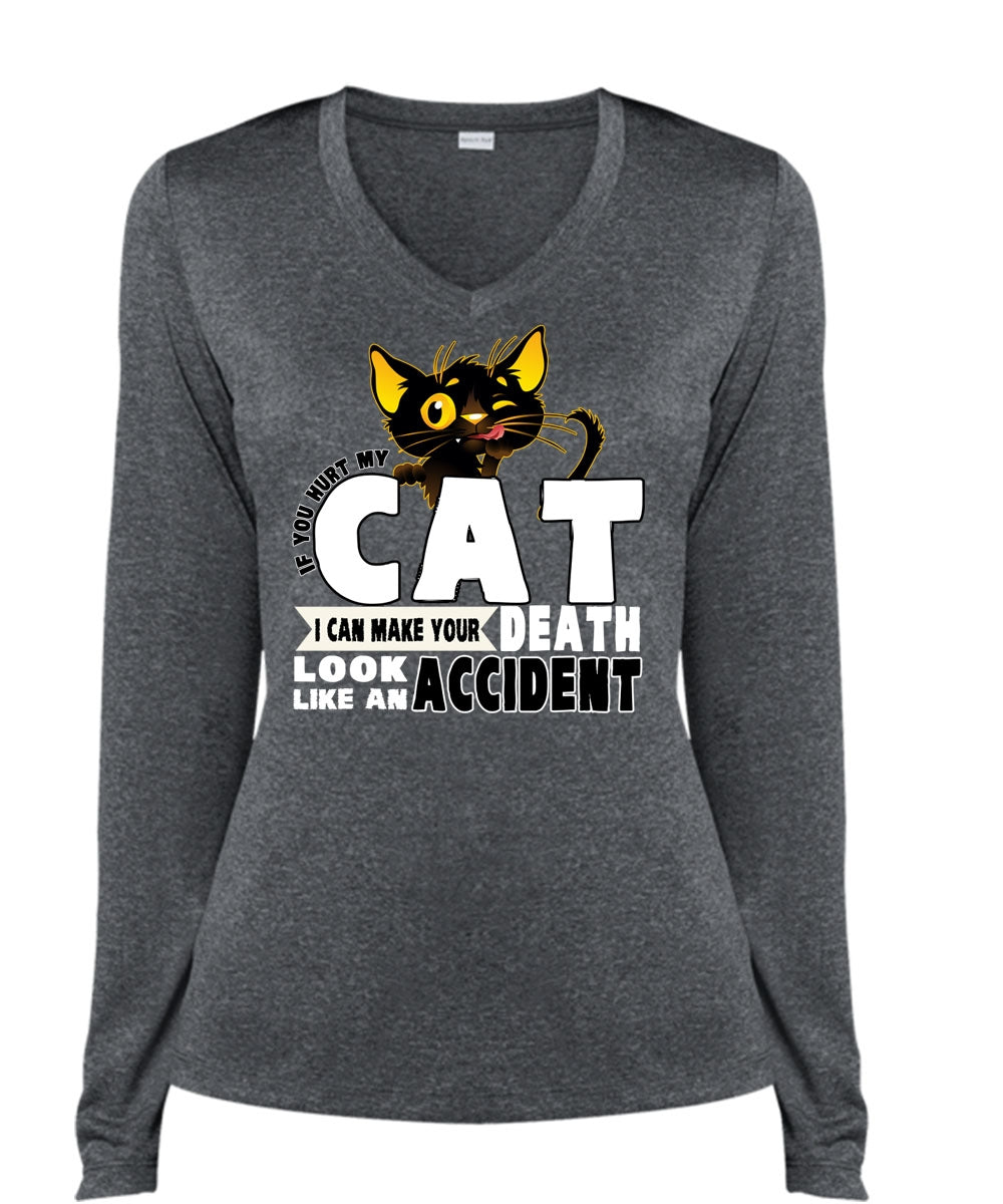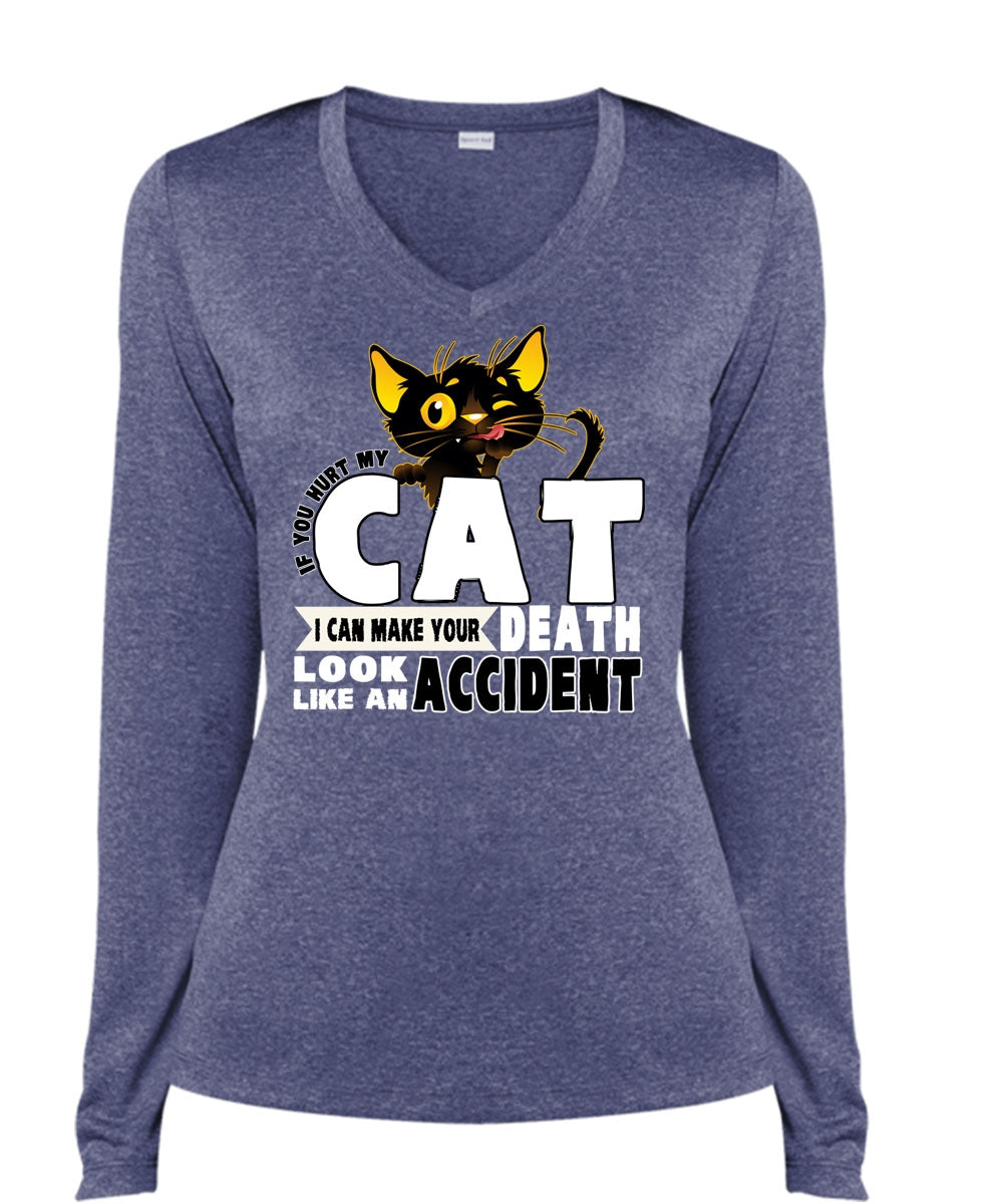 You Hurt My Cat T Shirt, Like An Accident T Shirt, Cool Shirt (Ladies LS Heather V-Neck)