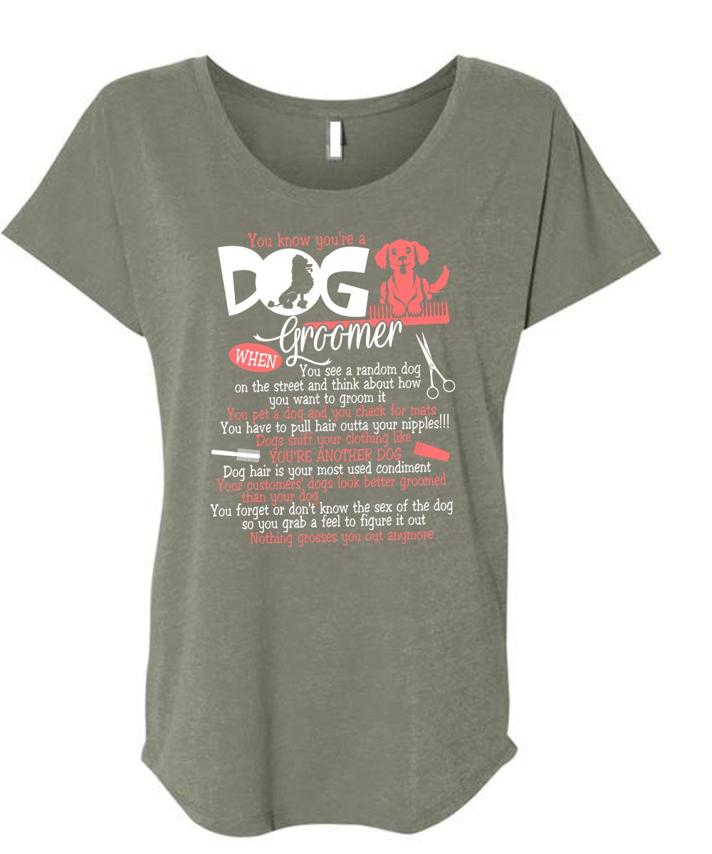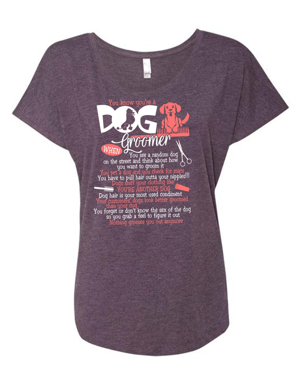 You Know You're A Dog Groomer T Shirt, You're Another Dog T Shirt, Cool Shirt (Ladies' Triblend Dolman Sleeve)