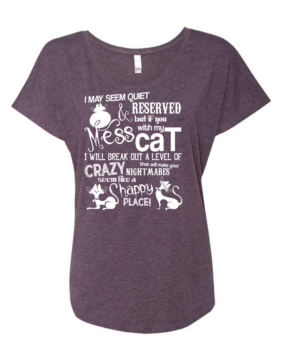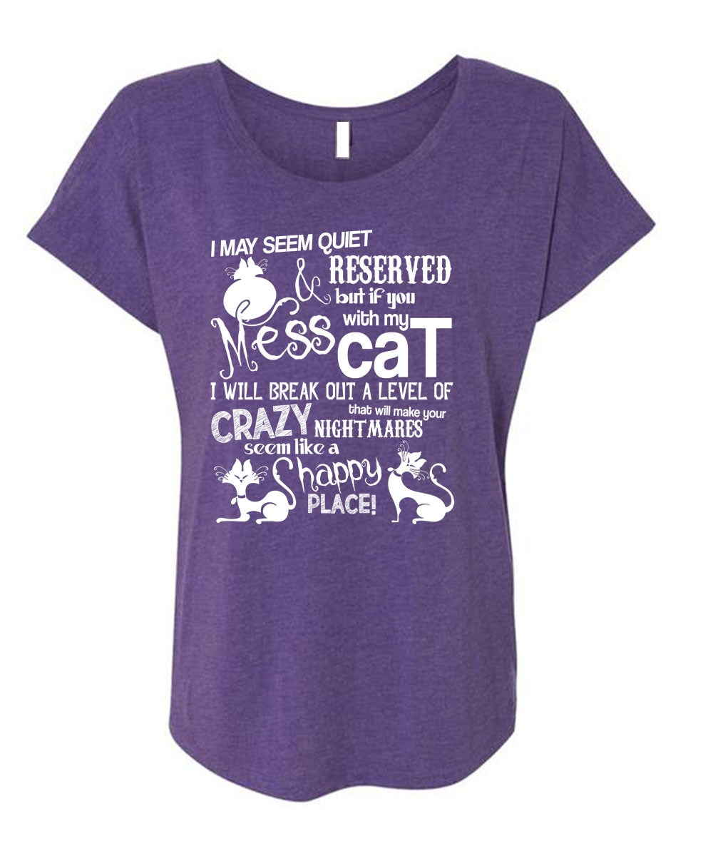 You Mess With My Cat T Shirt, Like A Happy Place T Shirt, Cool Shirt (Ladies' Triblend Dolman Sleeve)