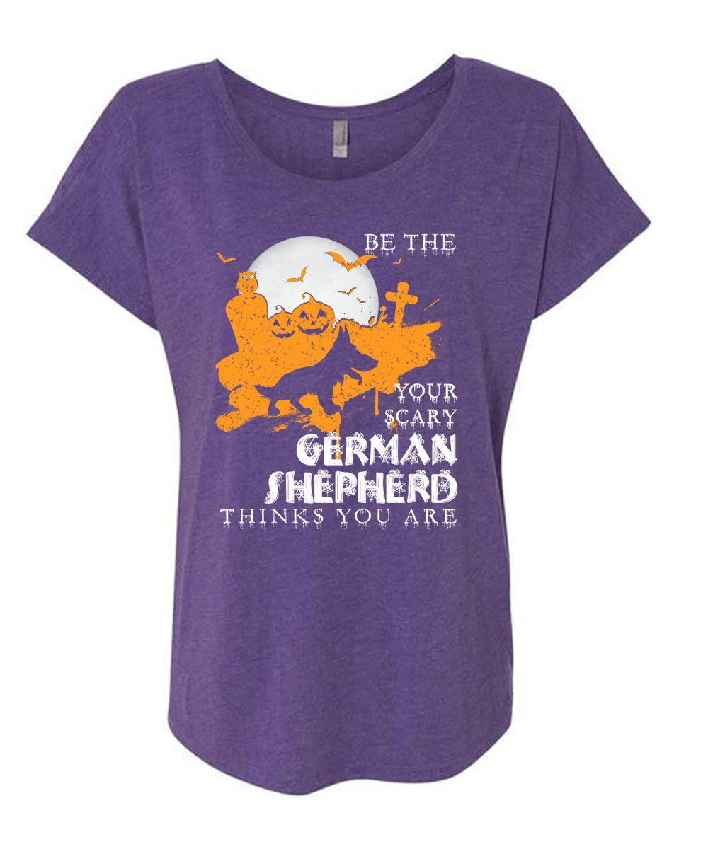 Your Scary German Shepherd Think You Are T Shirt, I Love Dogs T Shirt, Cool Shirt (Ladies' Triblend Dolman Sleeve)