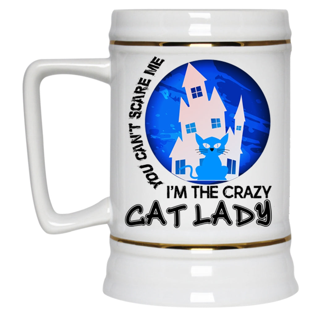 Cool Halloween Beer Stein 22oz, I'm The Crazy Cat Lady Beer Mug