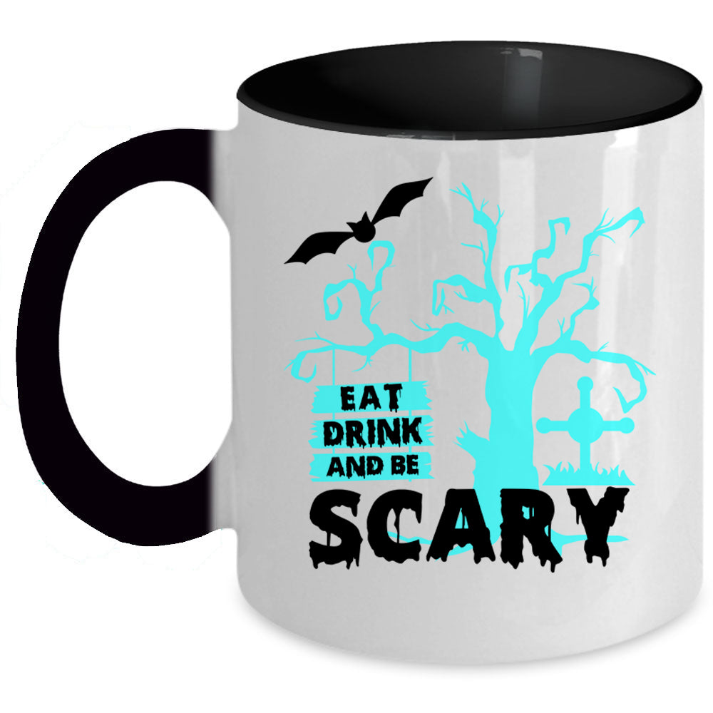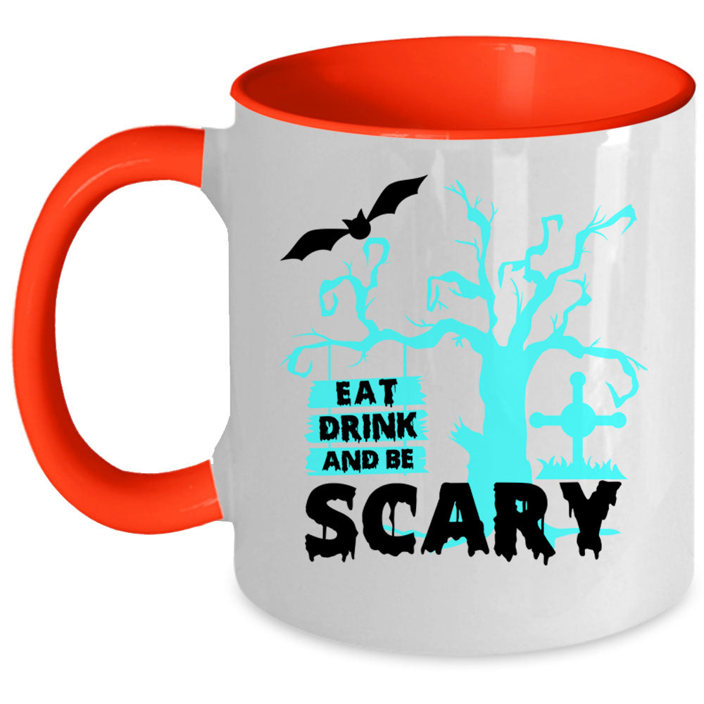 Cool Halloween Coffee Mug, Eat Drink And Be Scary Accent Mug