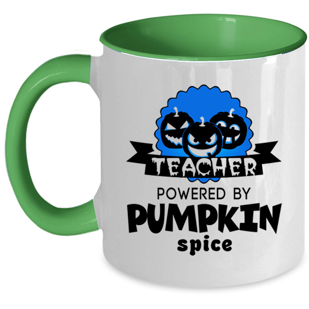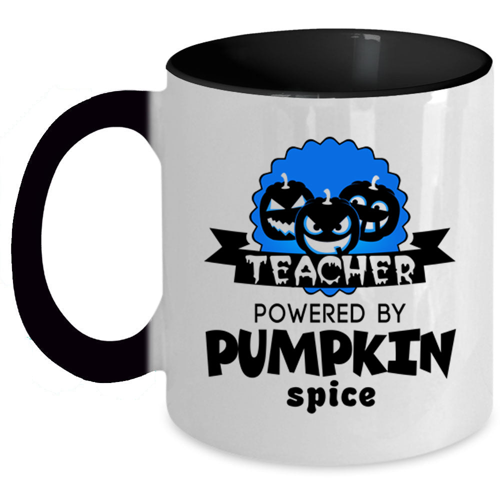 Cool Halloween Coffee Mug, Teacher Powered By Pumpkin Spice Accent Mug