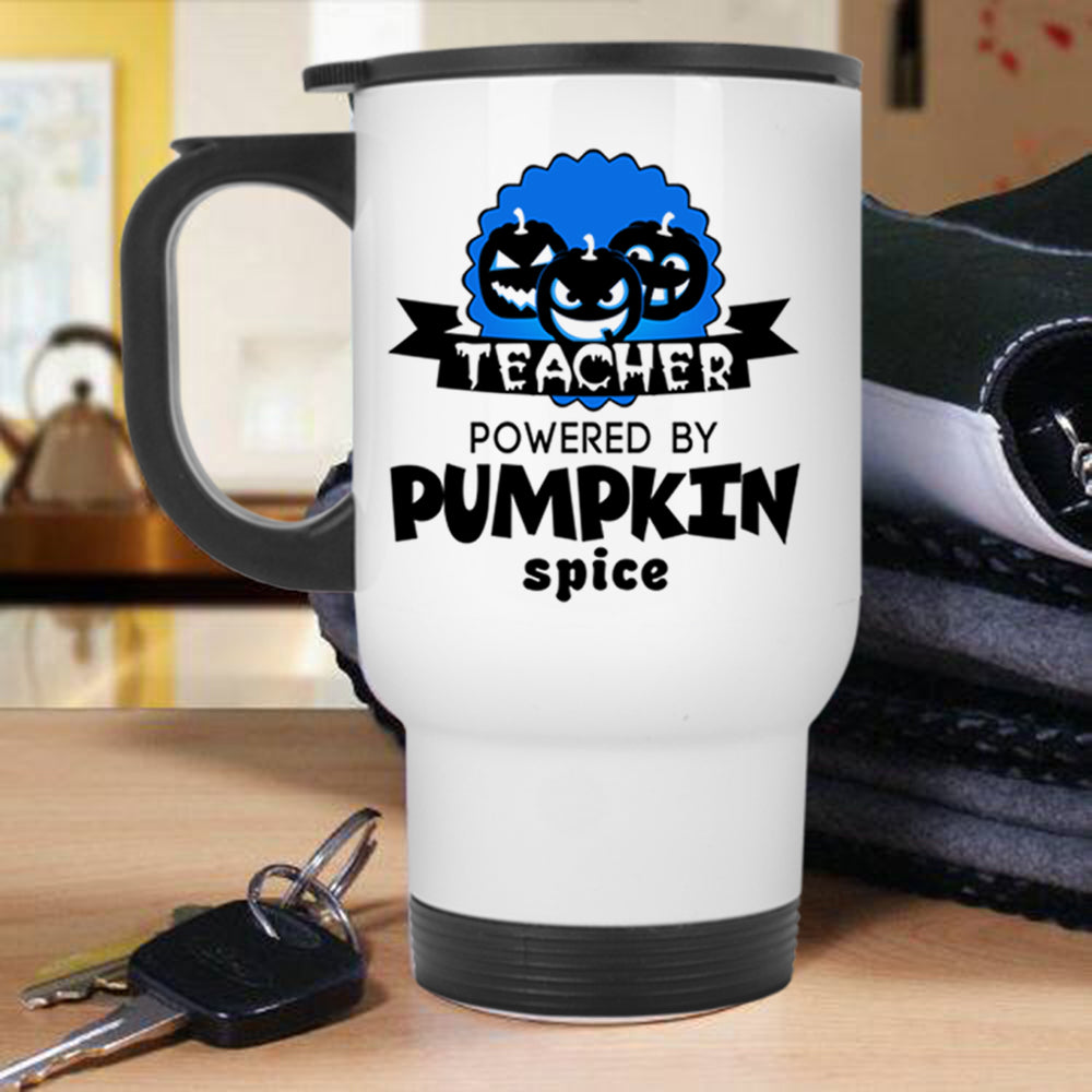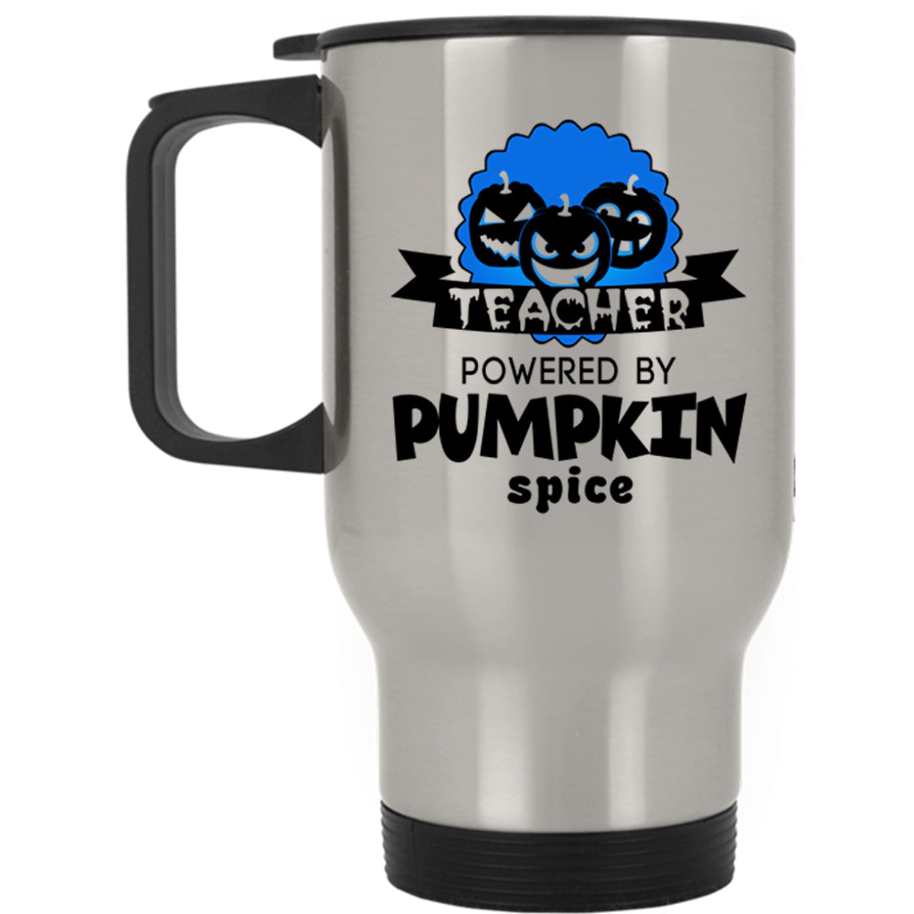 Cool Halloween Travel Mug, Teacher Powered By Pumpkin Spice Mug