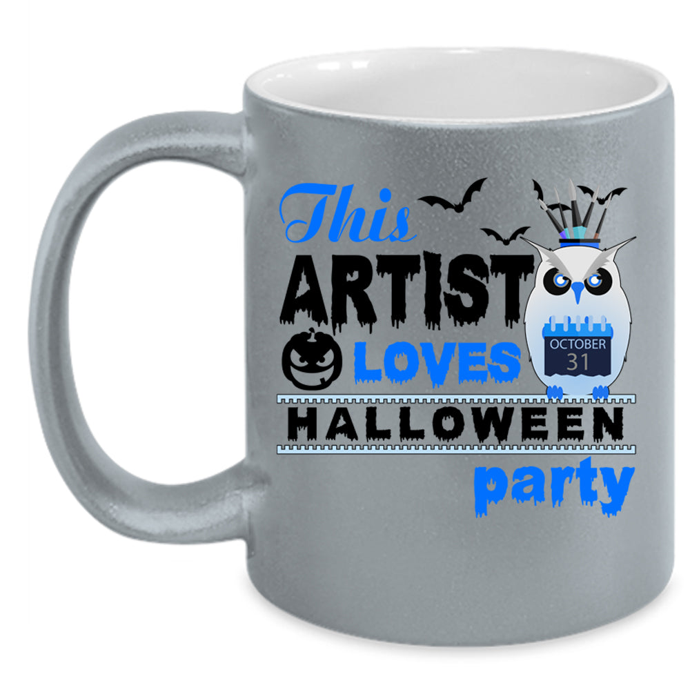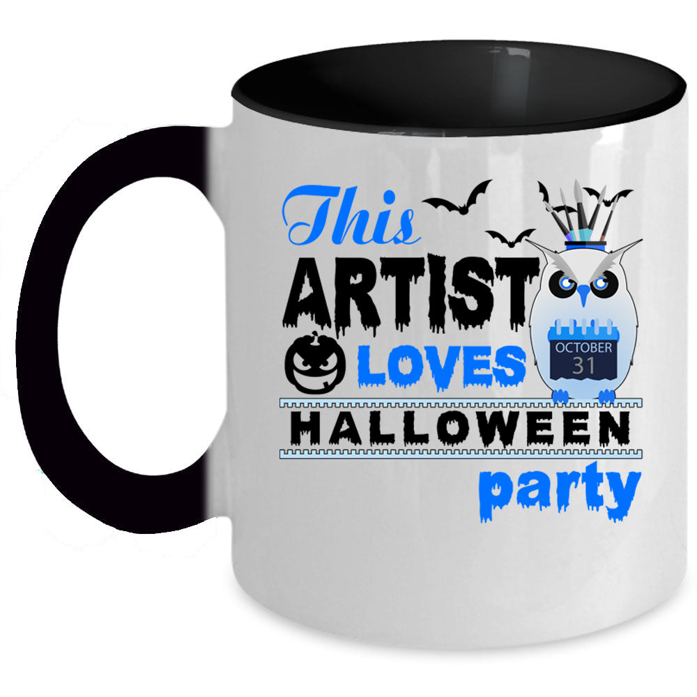 Cool Owl Coffee Mug, This Artist Loves Halloween Party Accent Mug