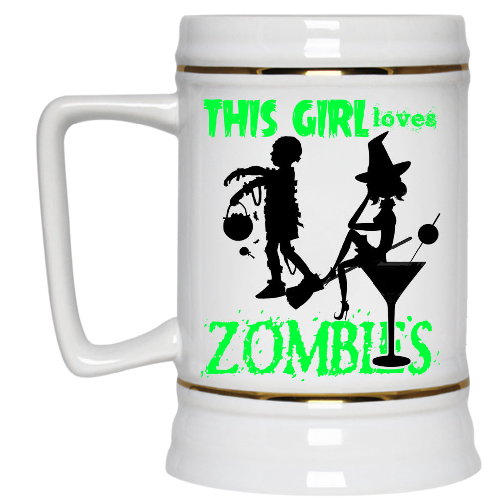 Cute Halloween Beer Stein 22oz, This Girl Loves Zombies Beer Mug