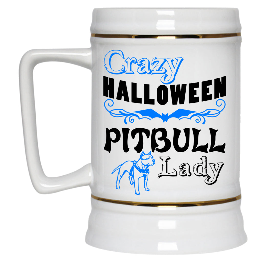 Cute Pit Bull Lady Beer Stein 22oz, Crazy Halloween Pitbull Lady Beer Mug