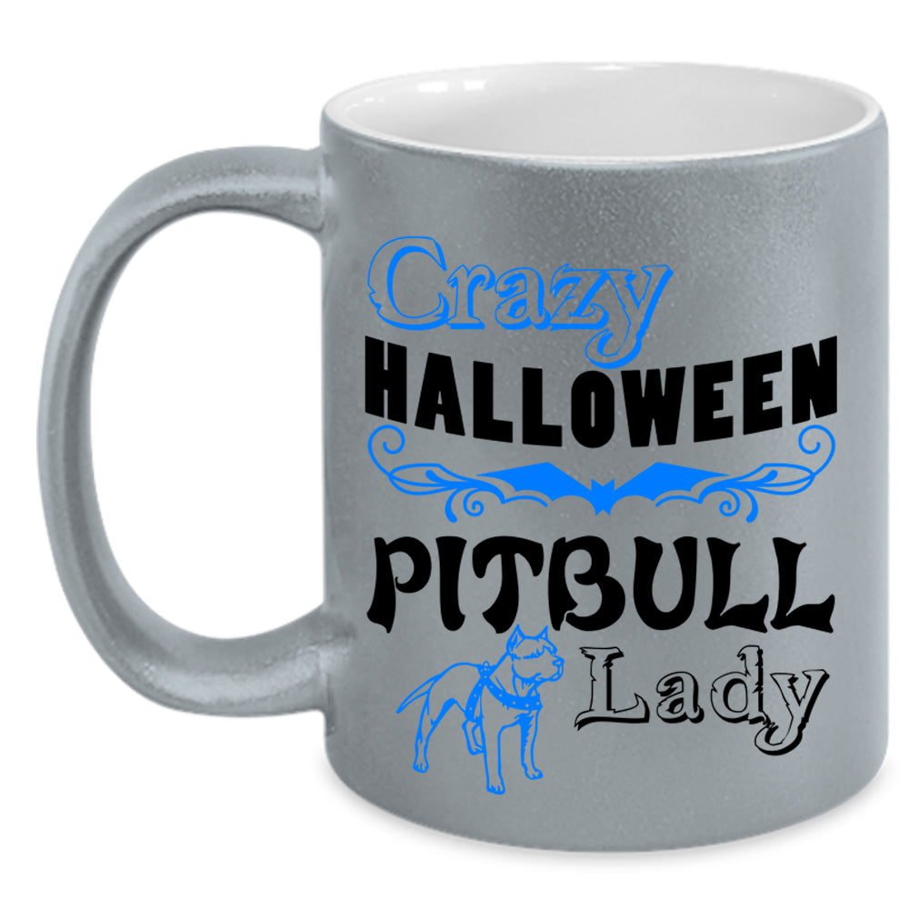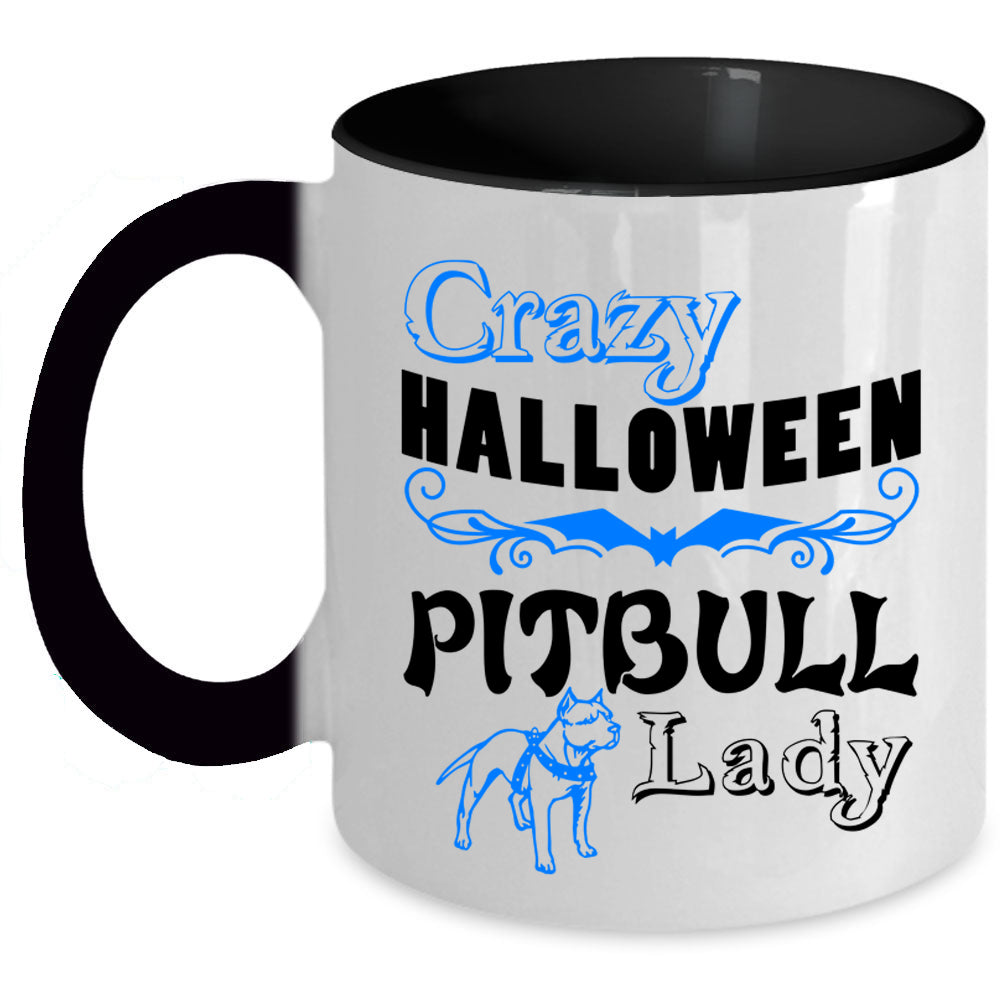 Cute Pit Bull Lady Coffee Mug, Crazy Halloween Pitbull Lady Accent Mug