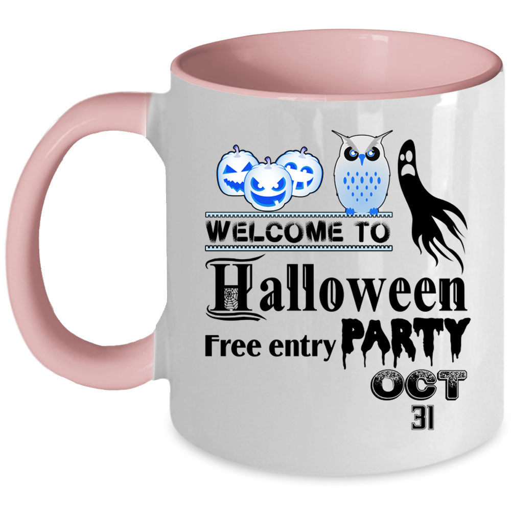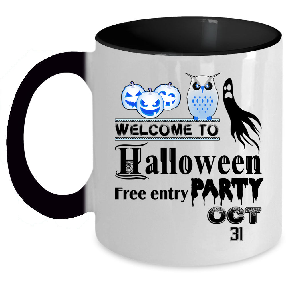 Free Entry Oct 31 Coffee Mug, Welcome To Halloween Party Accent Mug
