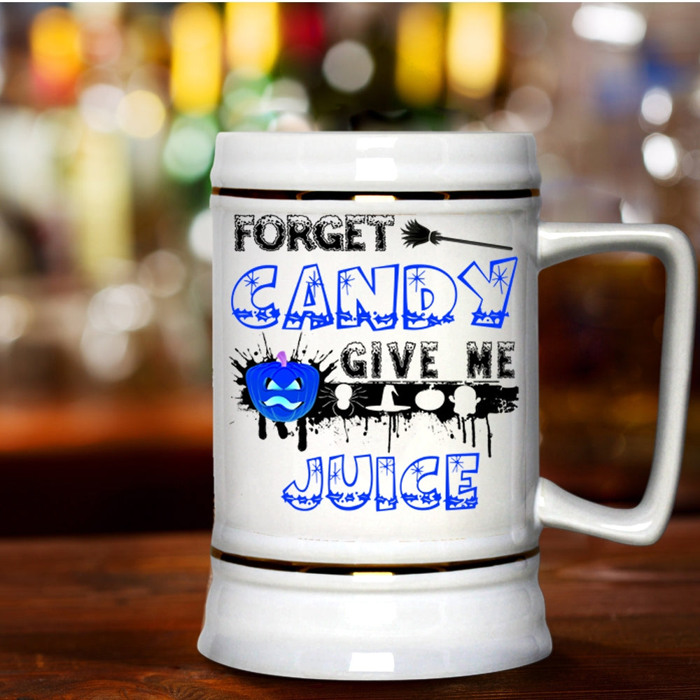 Funny Halloween Beer Stein 22oz, Forget Candy Give Me Juice Beer Mug